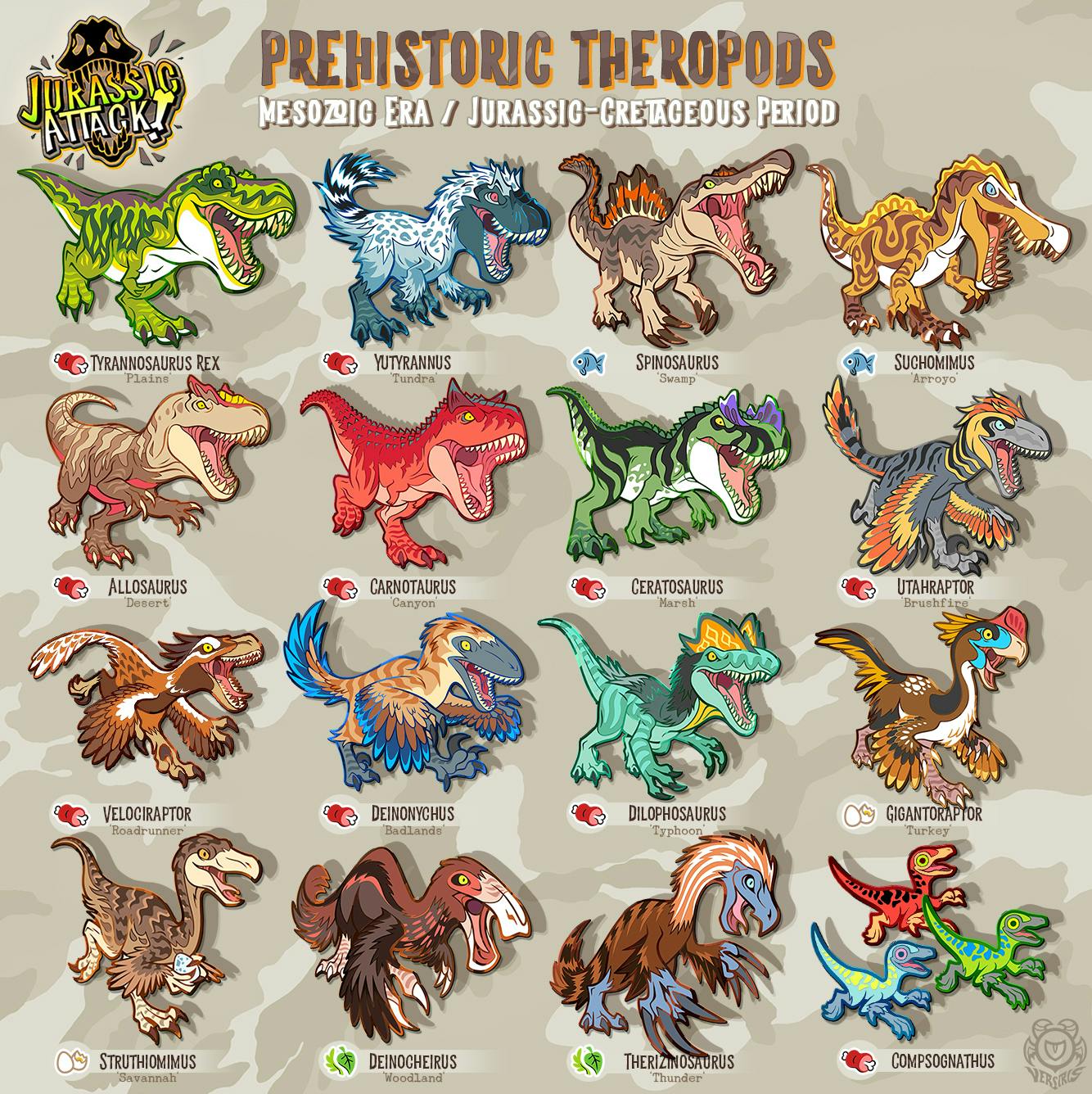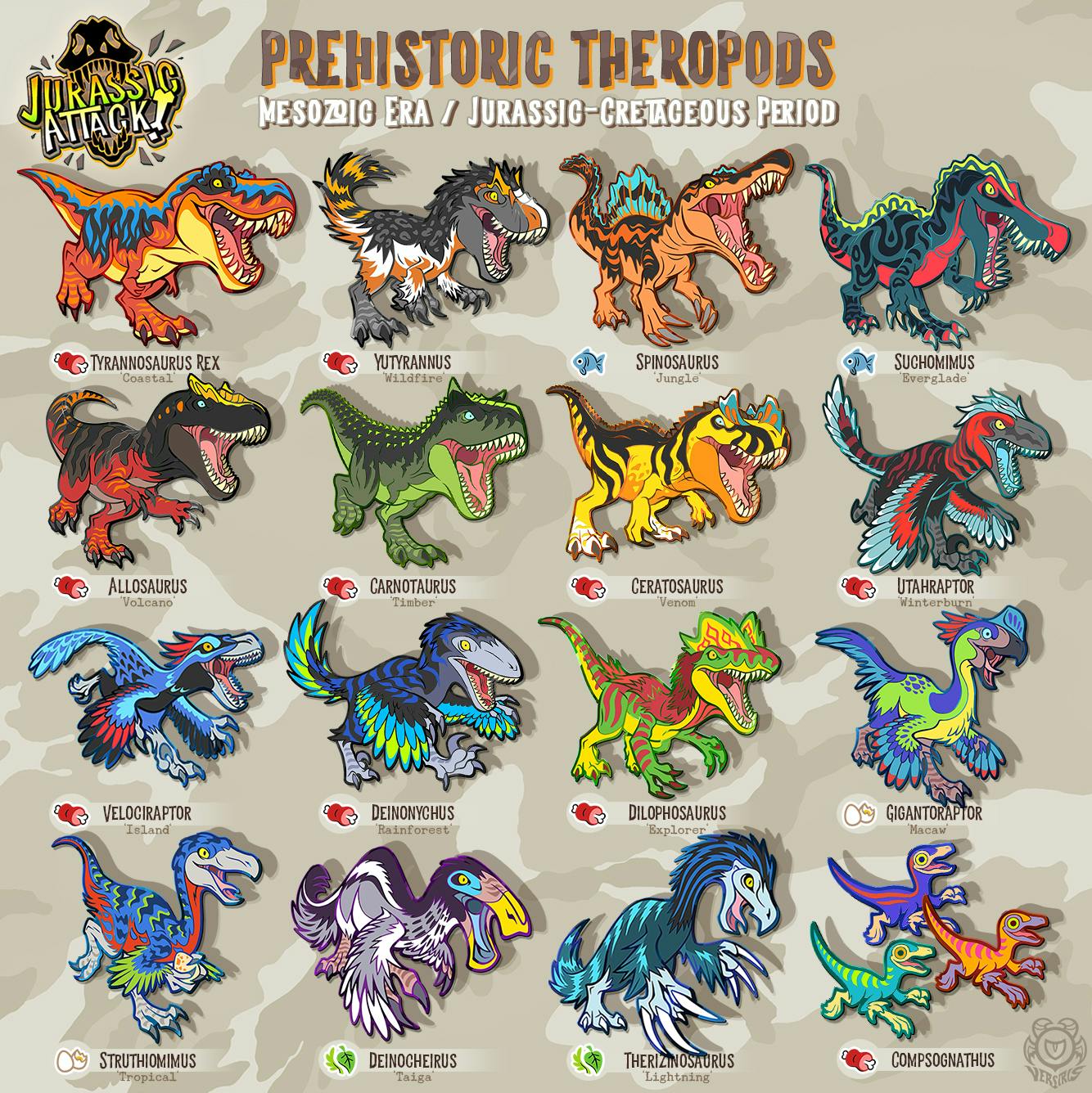 Here's a handy chart of all the regular-size dinos from the campaign in both colors! (ignore the compys lol)