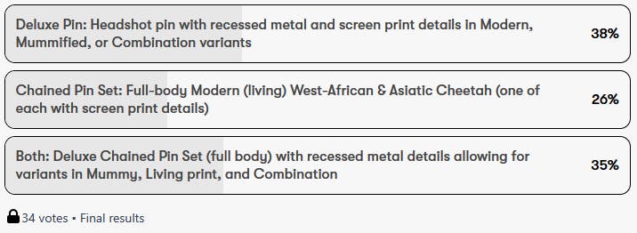 Project Update: Ancient Cave Cheetahs Pin Style TIE-BREAKER! Poll Result #2: