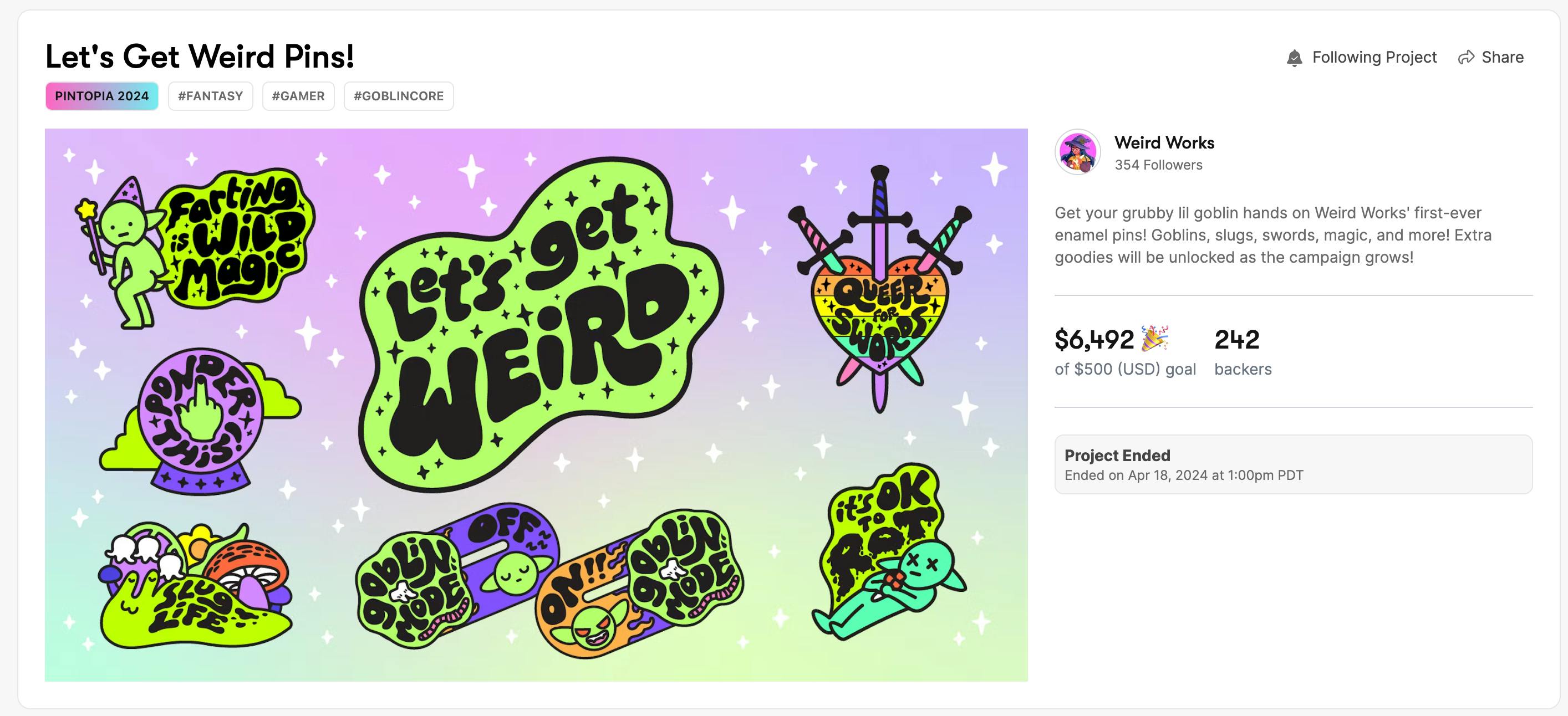 Thank you everyone for backing our Enamel Pin campaign! We raised almost $6.5k, and unlocked many stretch goals along the way. We didn't unlock the goblin mode beanies unfortunately, maybe we can try again in a future campaign.