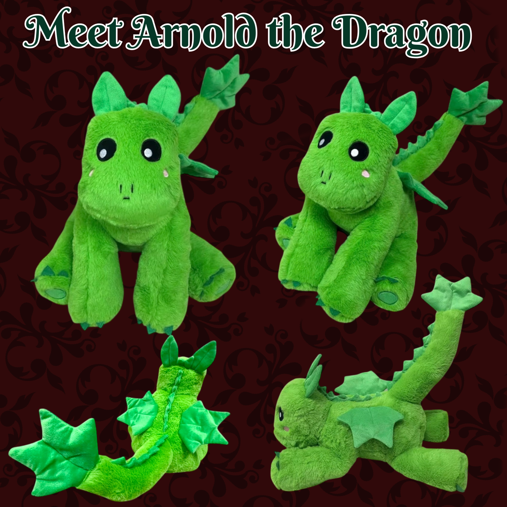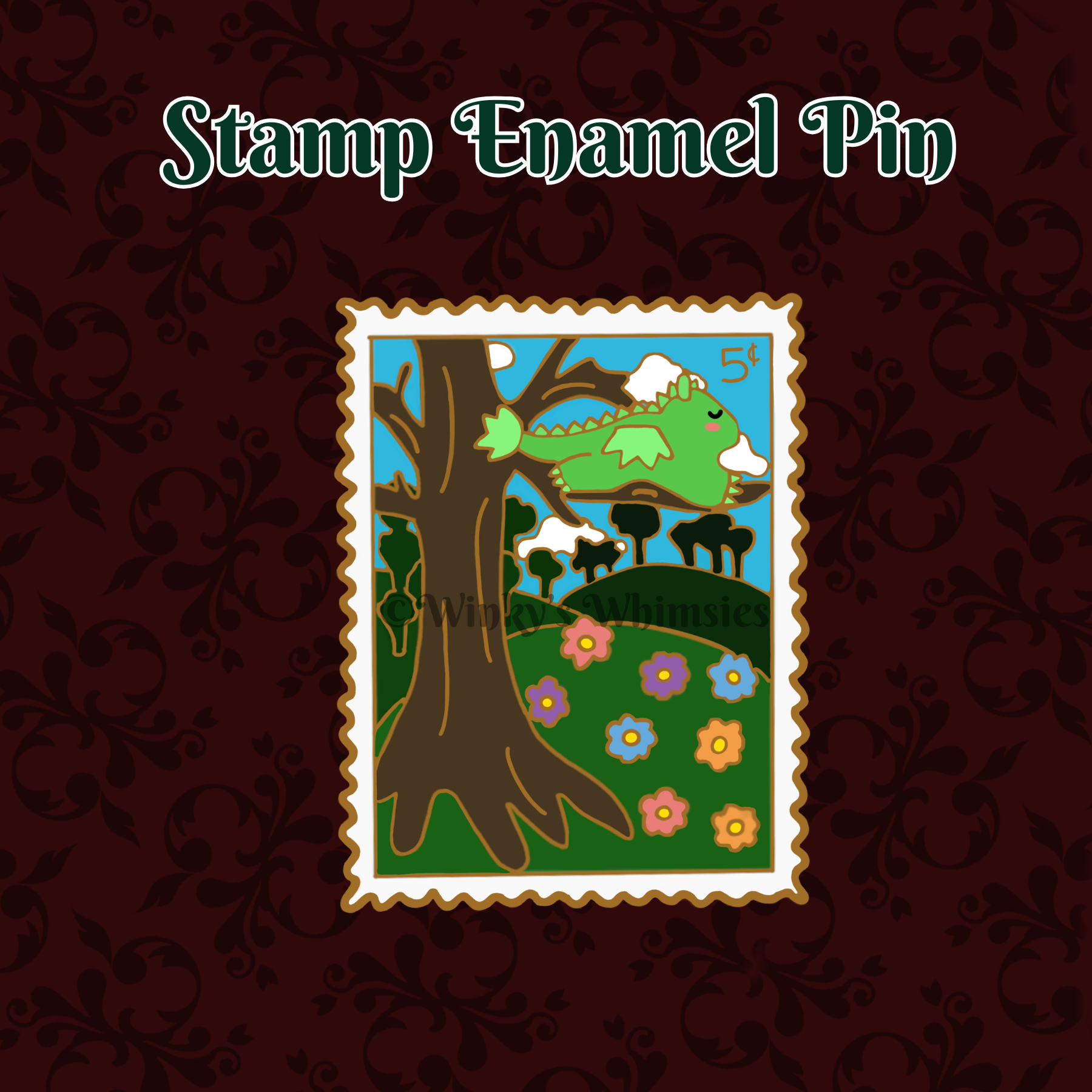 Each plushie is floppy and lightly weighted. They weigh around 1.5-2 lbs. All of them will have their own outfit, which will be an optional add on. We also have designed 10 enamel pins. They are based on postage stamps! You can see the design for Arnold's pin below.