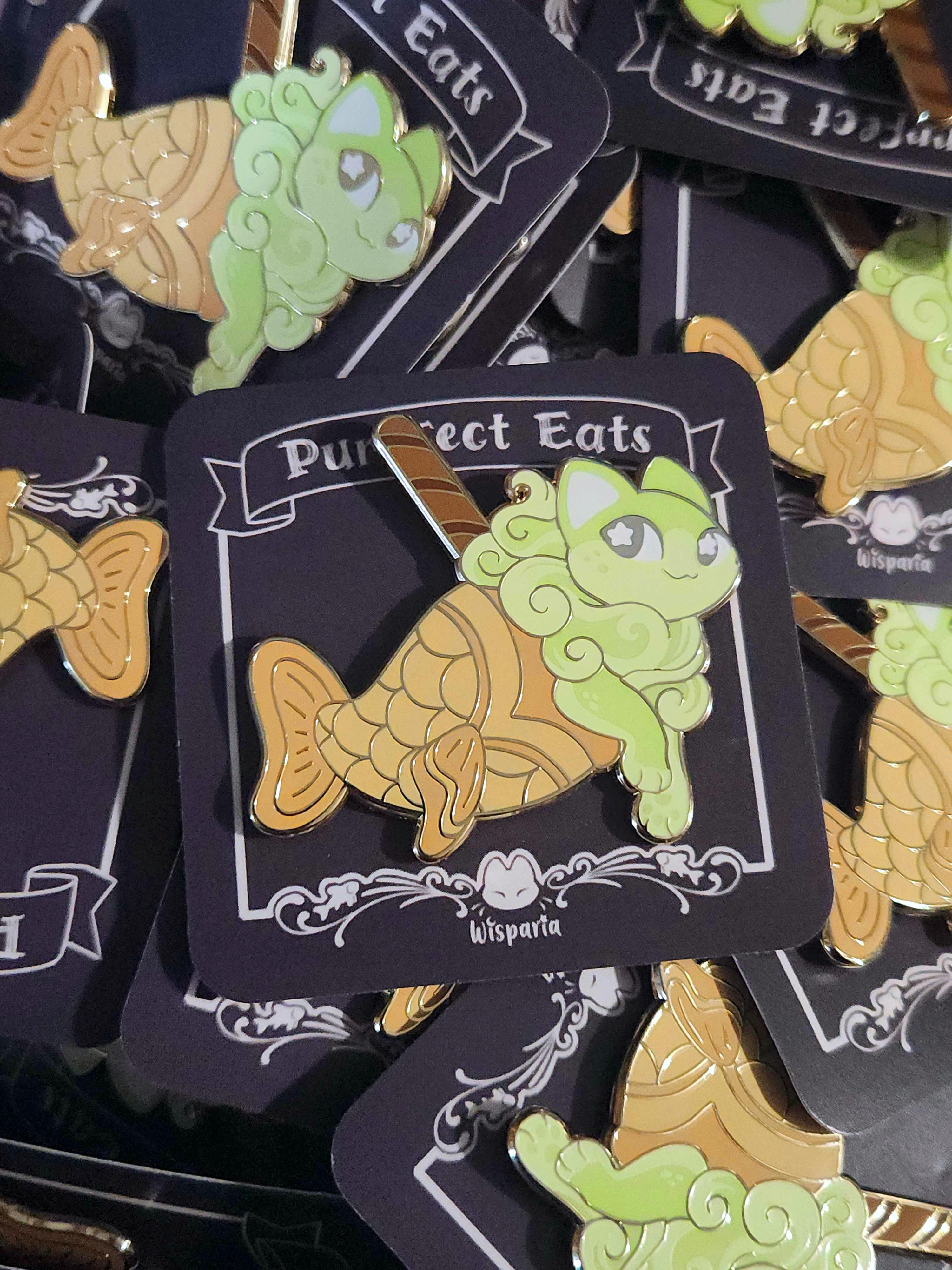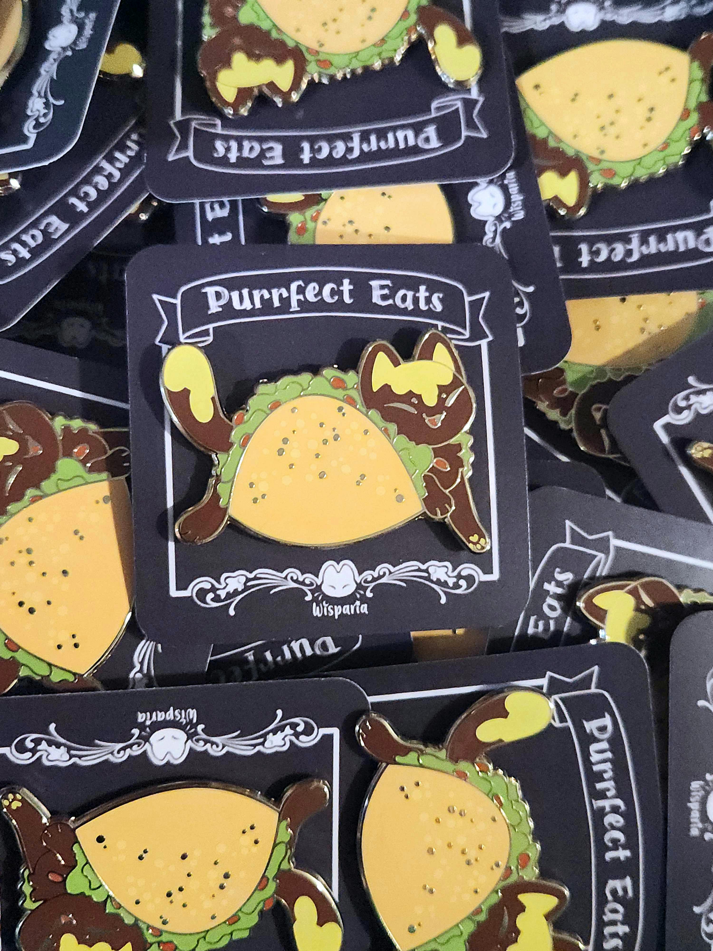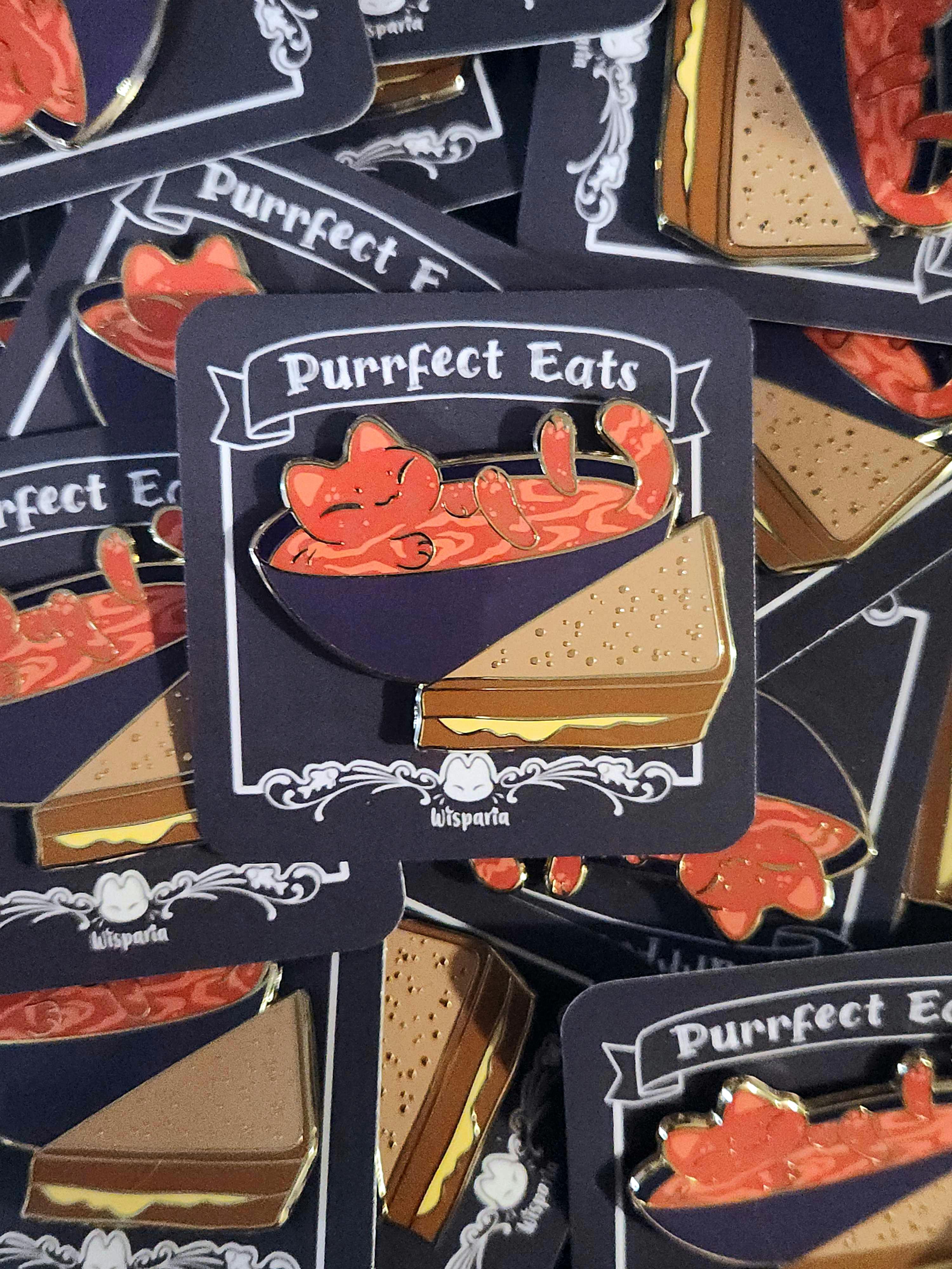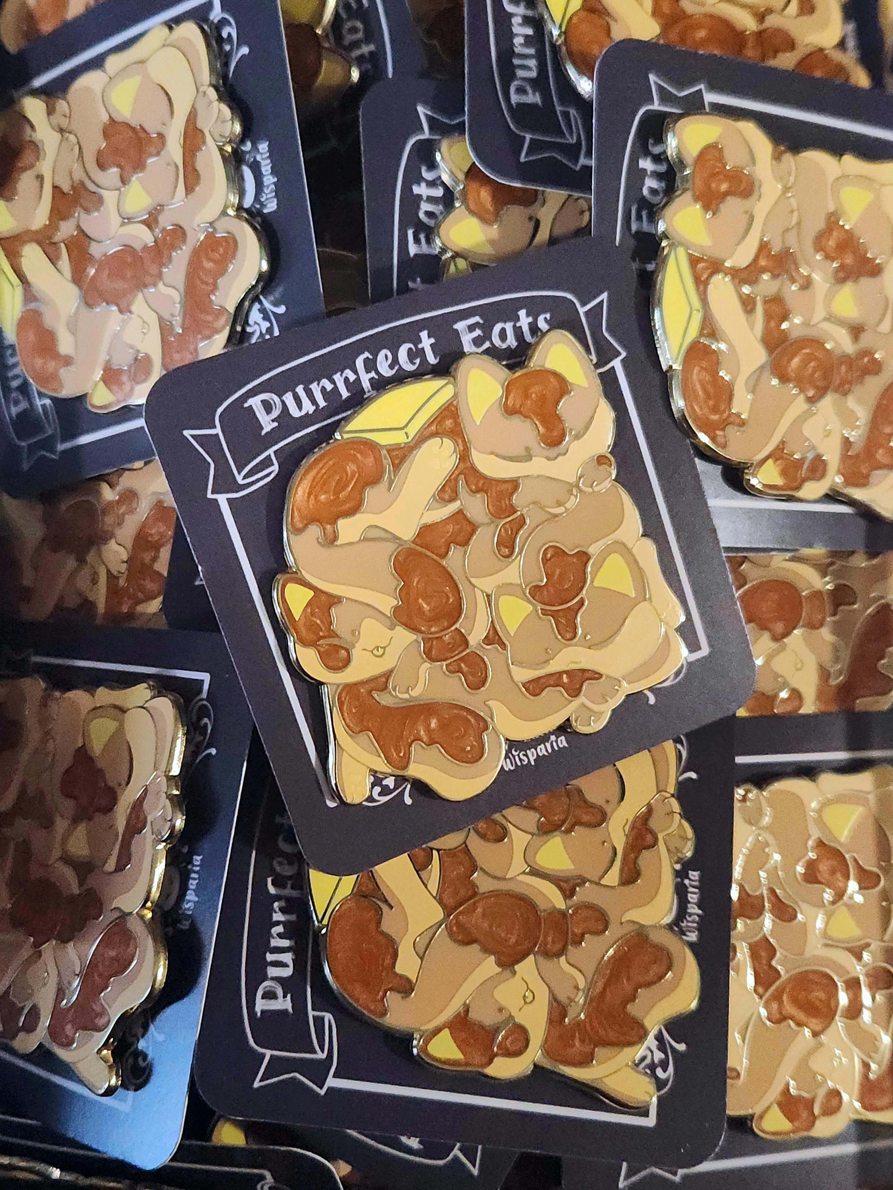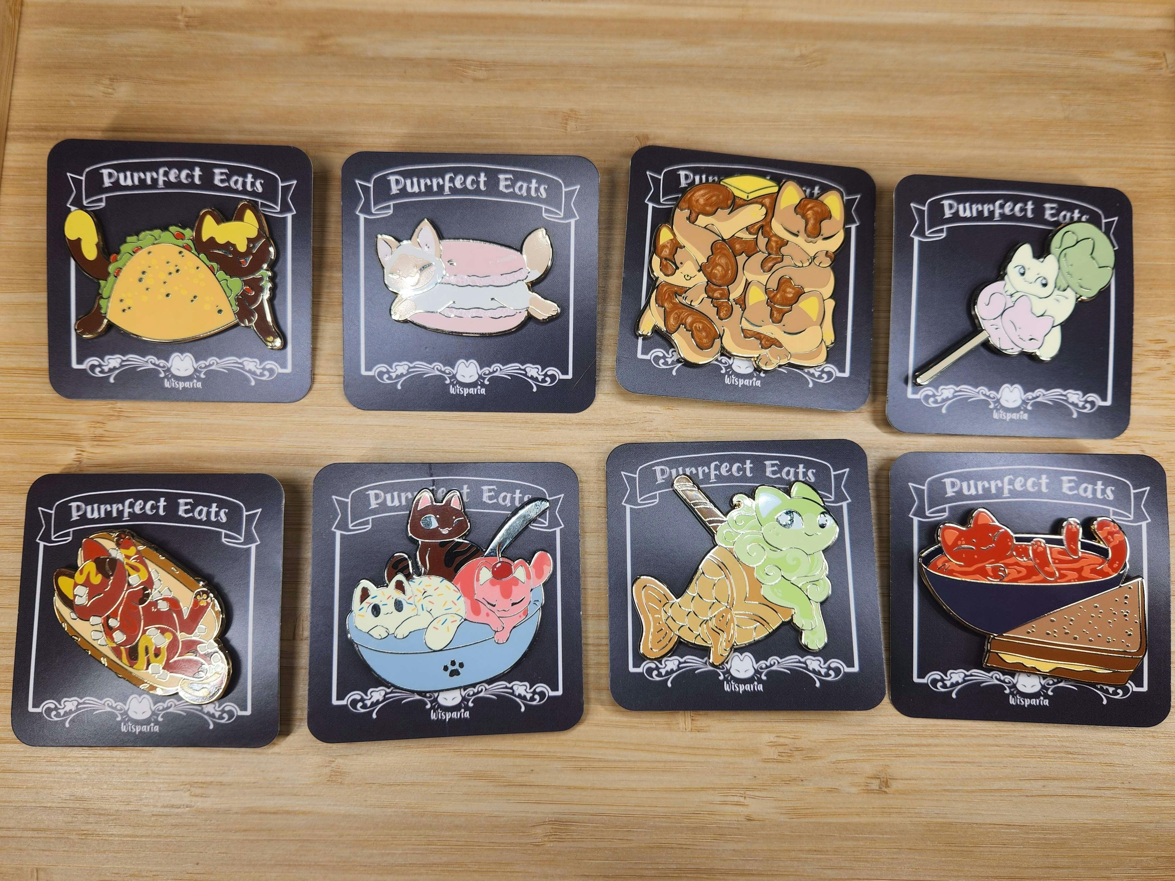 And last but not least, while simple, I'm working on finalizing the backing card for each pin, the back will have some basic pin care info, but the front of the card will match the cute menu style graphics I've been using during the campaign!