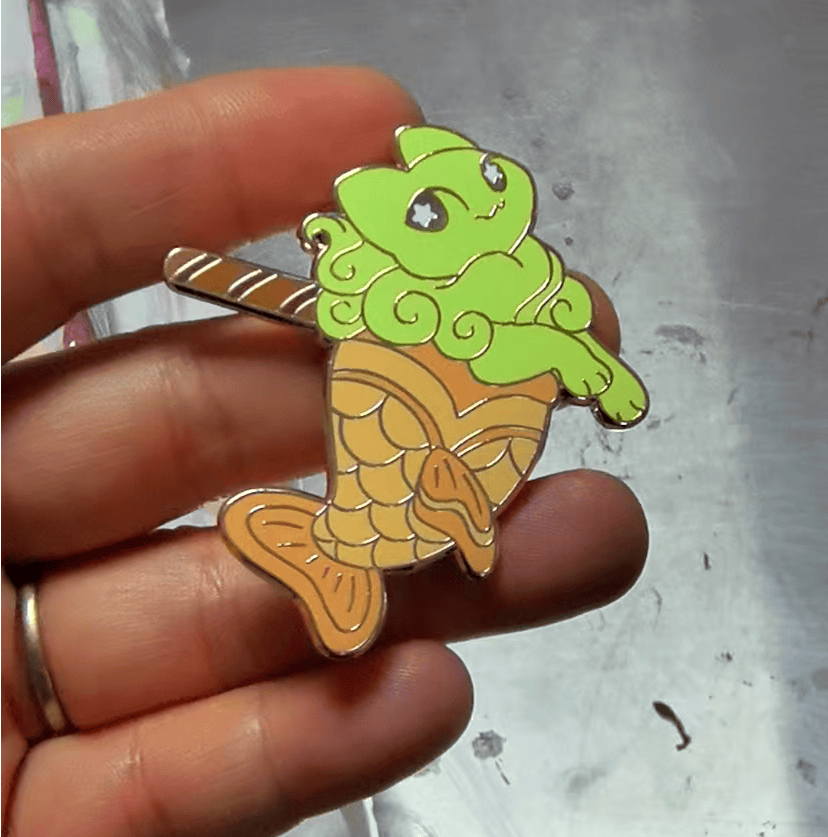**Please keep in mind these pins are still being worked on! The colors are also all taken in various lighting, and are missing their screenprinting so they might look quite a bit different from what we expect for the final product. They are all still awaiting a few stages of the progress but they are coming along swimingly! I love seeing behind the scenes photos so I hope you're as excited about these as I am!