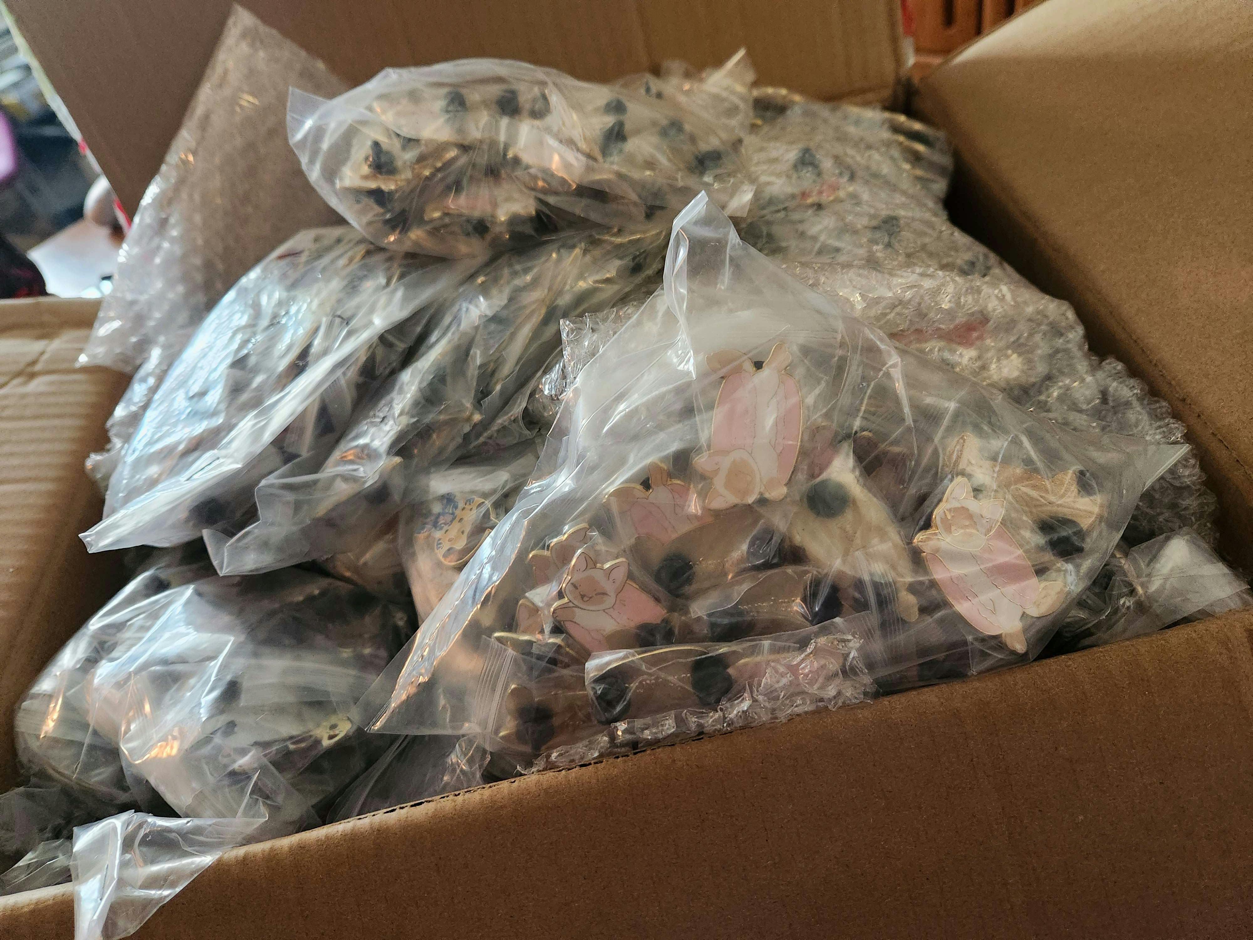 I received all the pins about 2 weeks ago, and in-between work I've been sorting organizing, quality checking and backing as many pins as I could! It's been a process as pin checking is new to me, as well as I've never received this many items that needed to be individually inspected at once before!