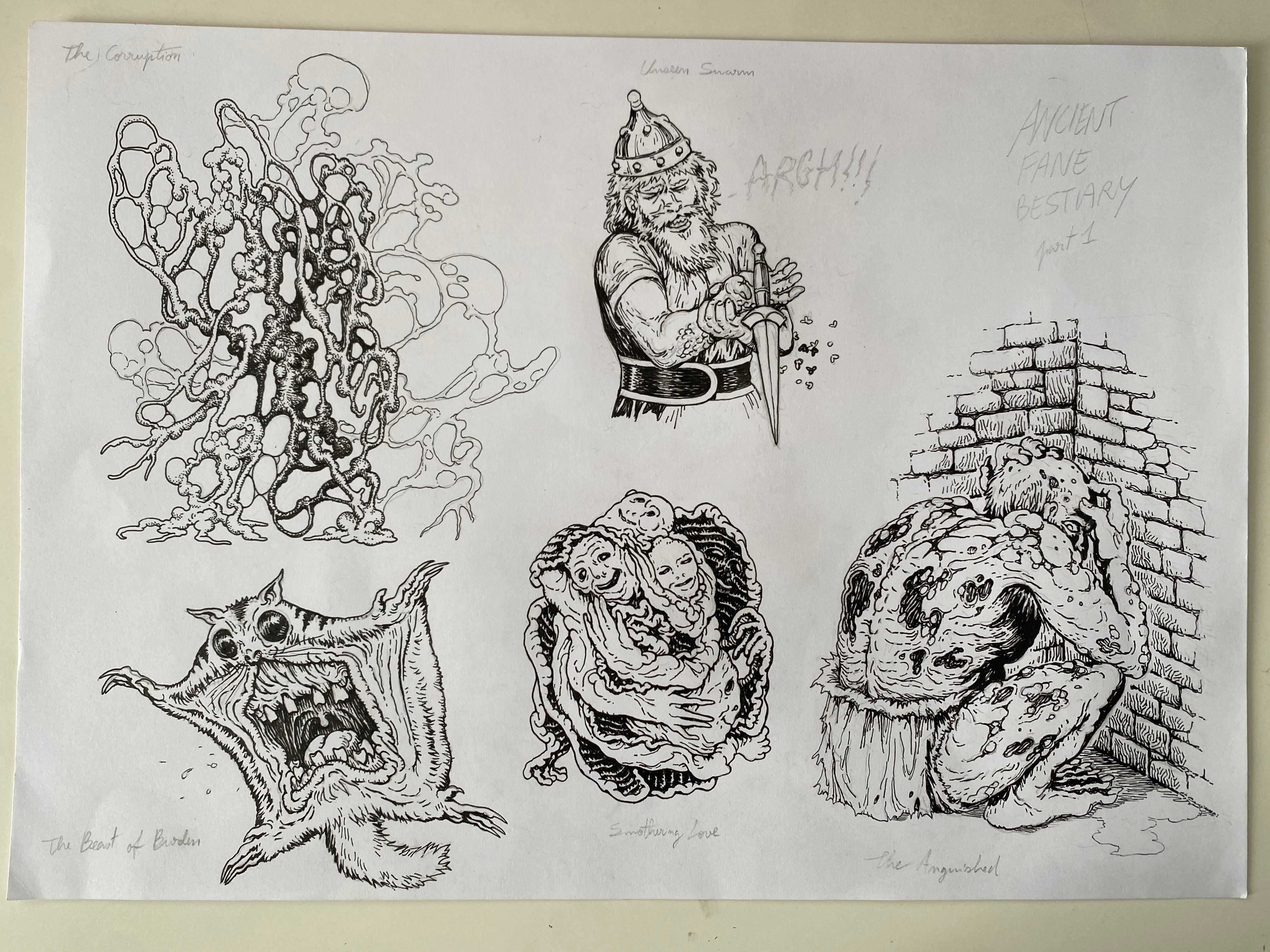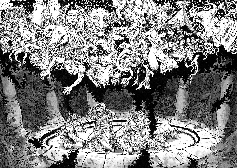 Stefan is doing six pieces of margin art; one for the introduction and conclusion, and one for each of the levels of the Ancient Fane, the "Dominions" of Guilt, Fear, Desire, Pride and Lies.