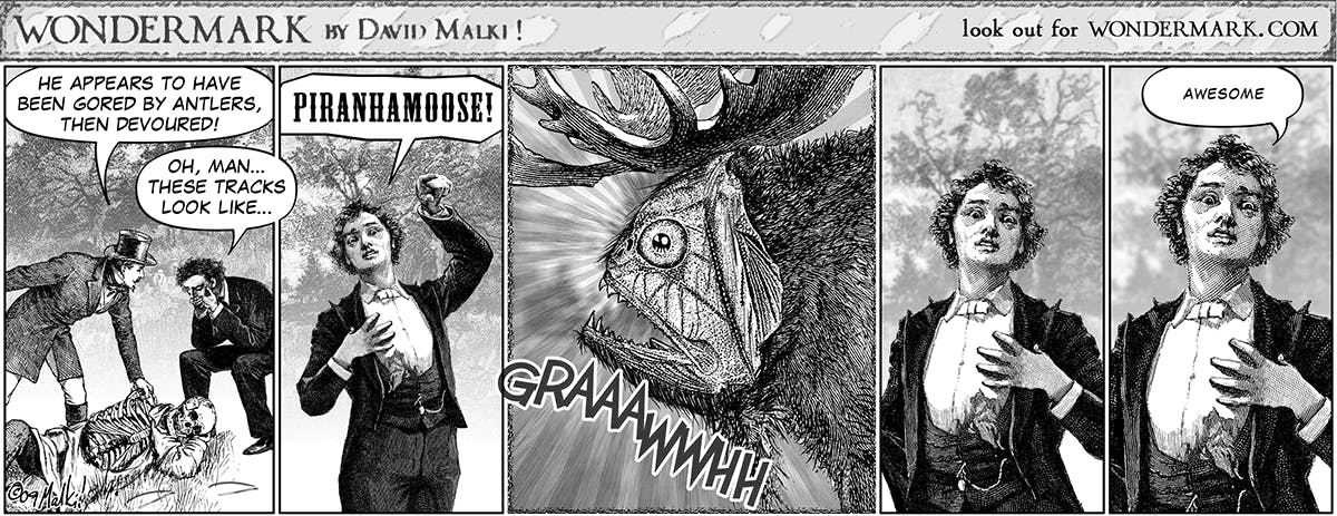 And there was the PIRANHAMOOSE, which emerged in 2009 (Wondermark #495):