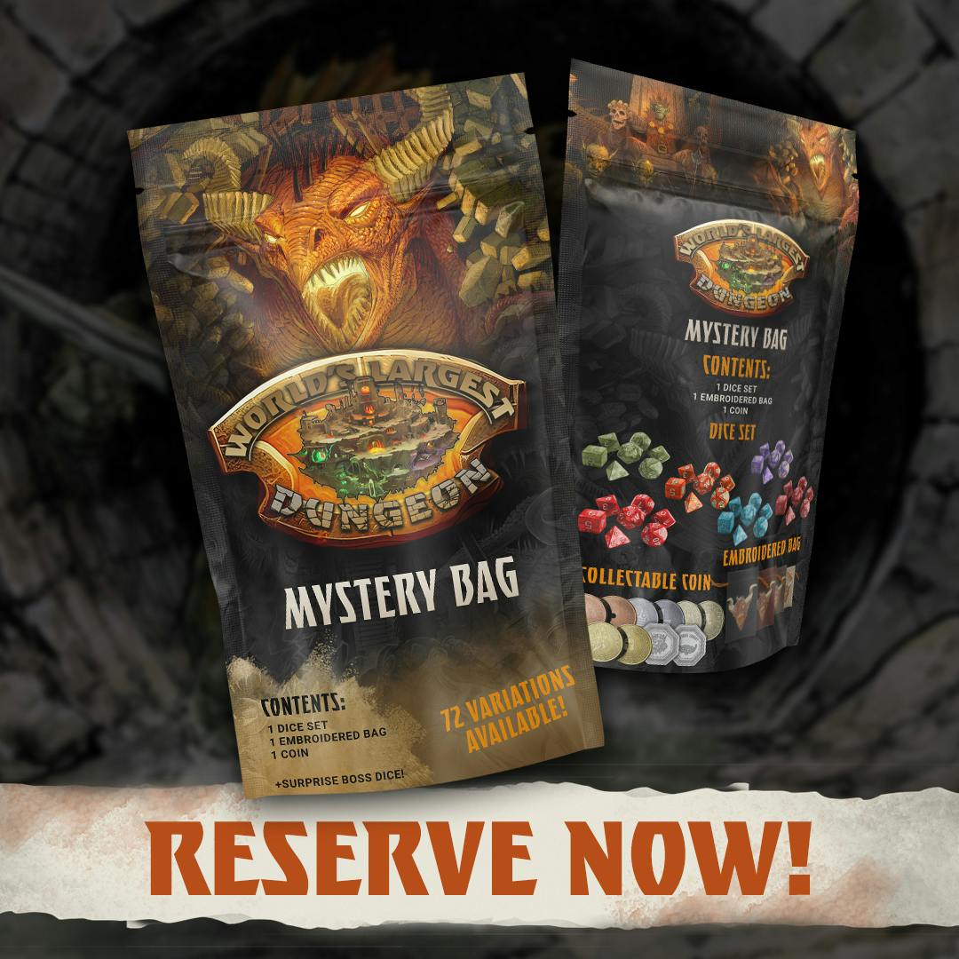 Get a free Mystery Bag when you reserve the World's Largest Dungeon today! To receive this offer, simply place a $1 deposit, and you will be locked in as a VIP. Then, when you back the project on Backerkit, you'll receive a free Mystery Bag (MSRP $19)