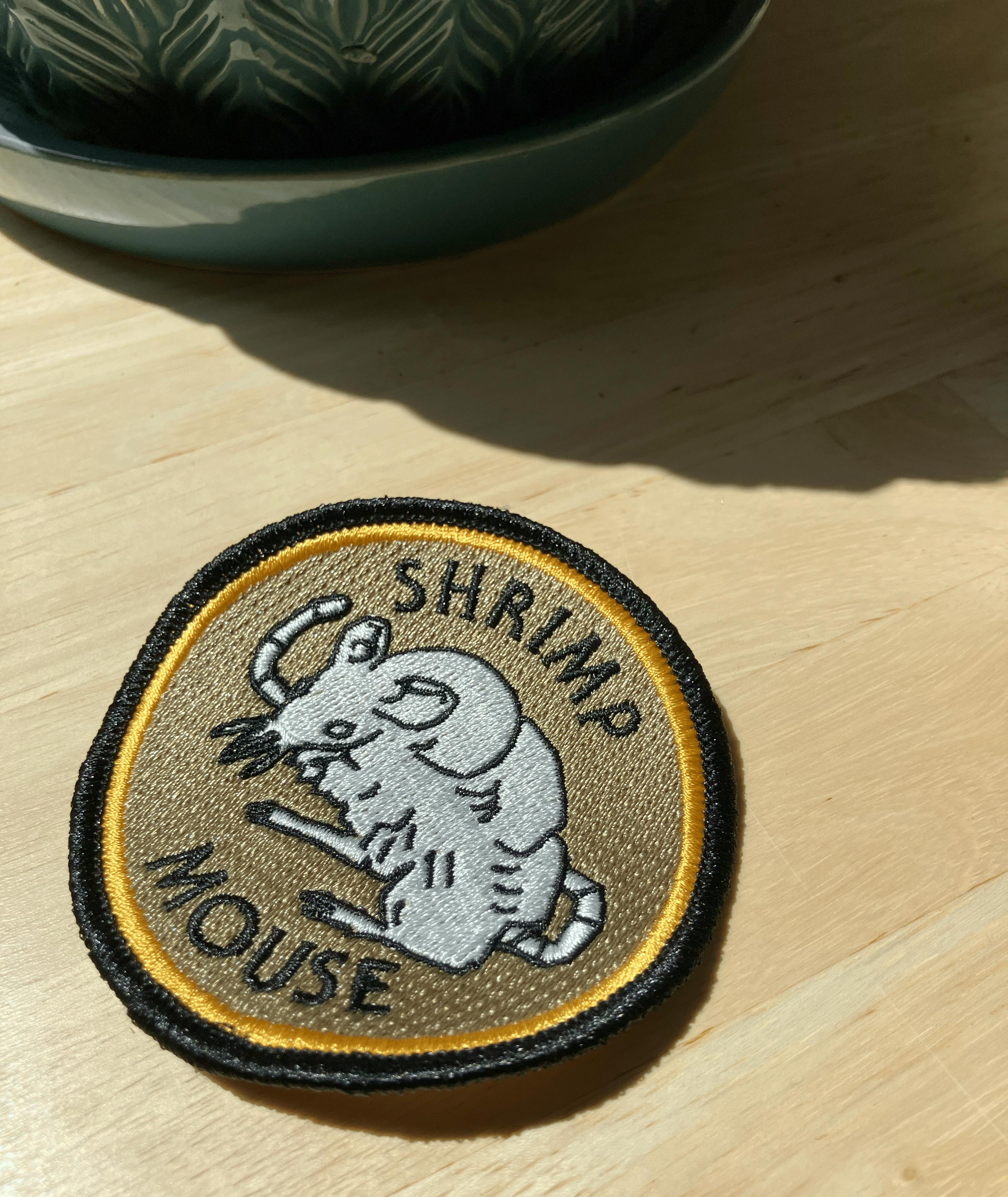 Shrimp-mouse patch sitting in the sun.