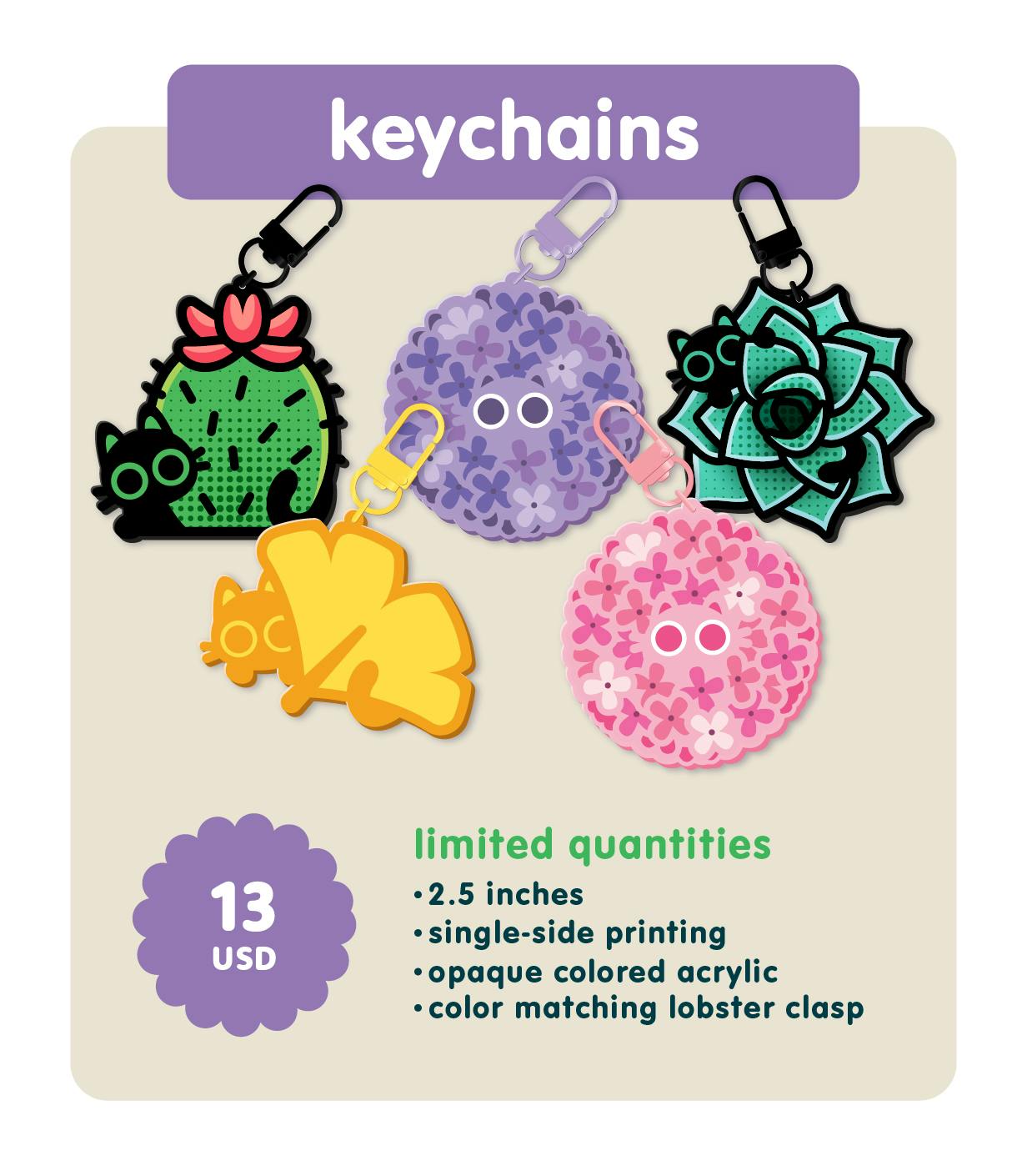 You will also be able to add any of these items onto your pledge if you don't see what exactly what you're looking for in the pledge levels! You can add keychains, enamel pins, mini pin sets, vinyl stickers, and sticker sheets to your order at any point during the campaign.