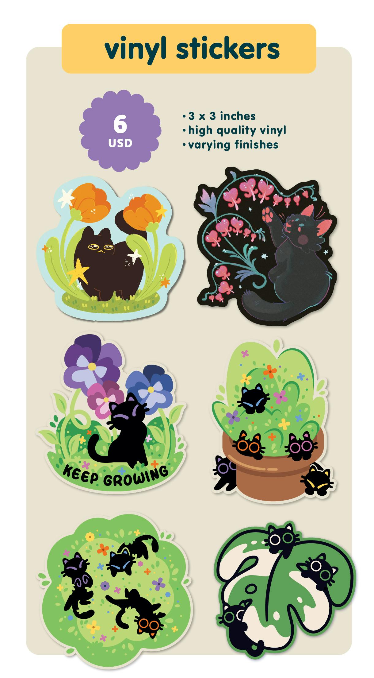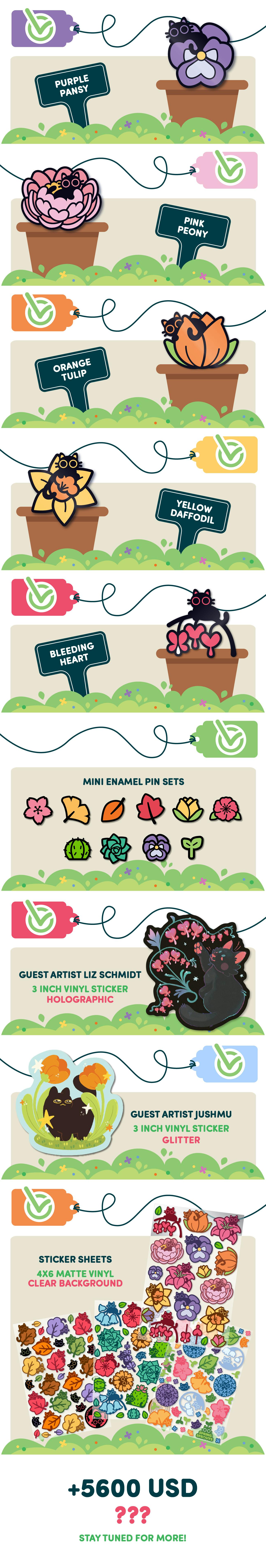 For this project I had the honor of working with two fantastic artists to bring Black Cat Botanicals to life in their personal styles as campaign-exclusive sticker designs!