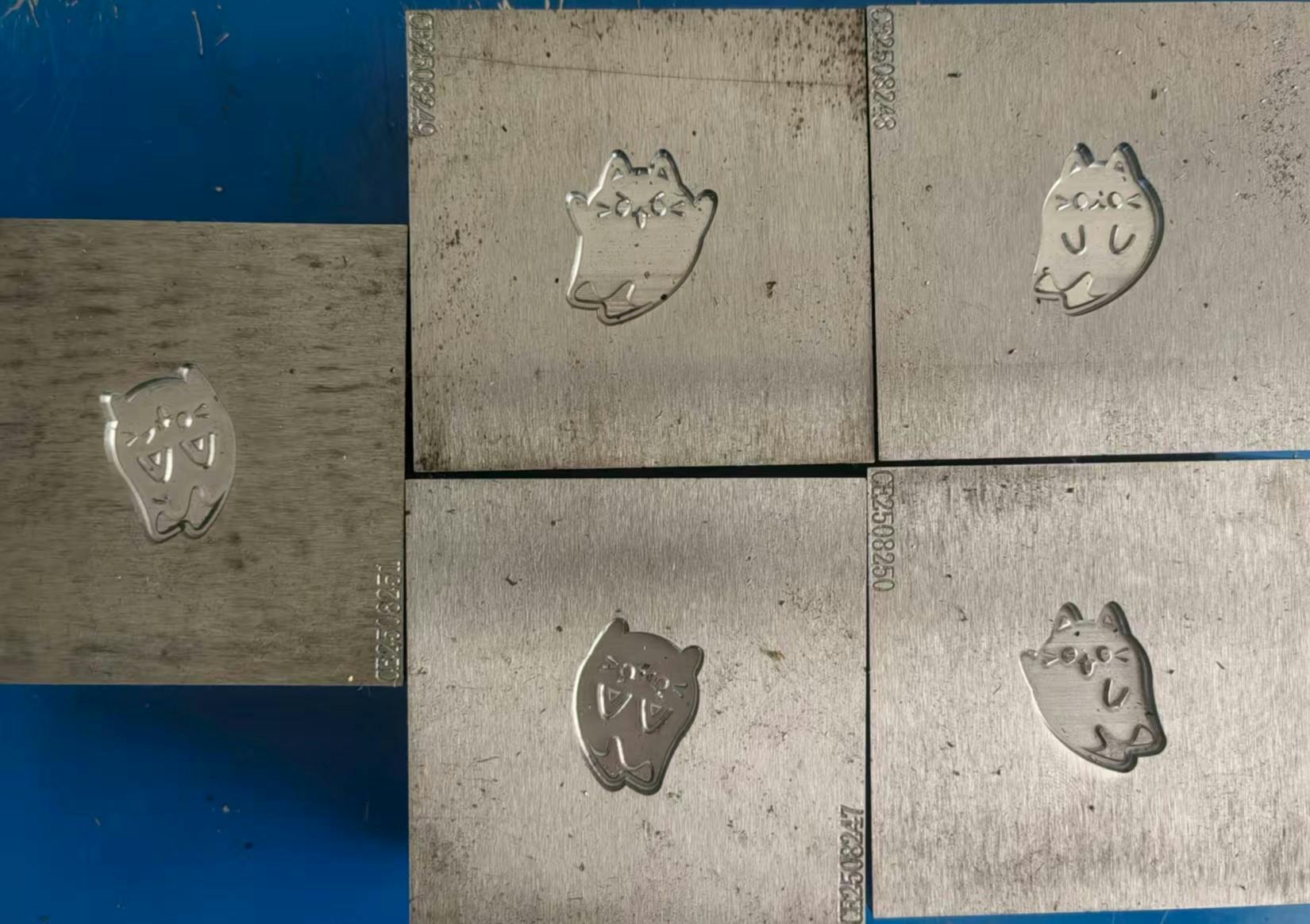 You can see how all 5 molds turned out below! A pin "master" is forged out of metal like this so it can then be used to duplicate the design into individual enamel pins.