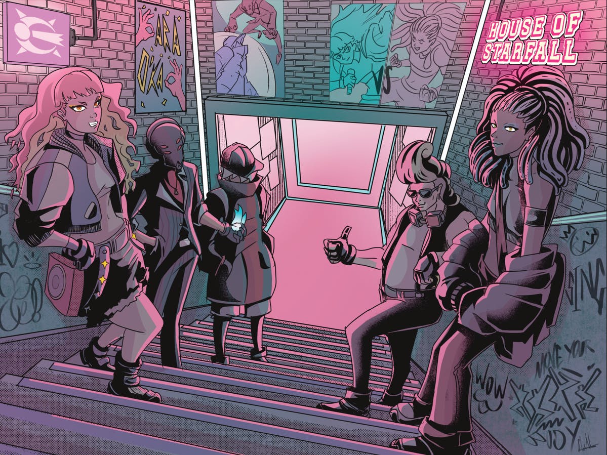 The House of Starfall, hanging out at the Planet Party karaoke bar on Adagio Street. Their Turf, Constellation Cord, isn't far away.