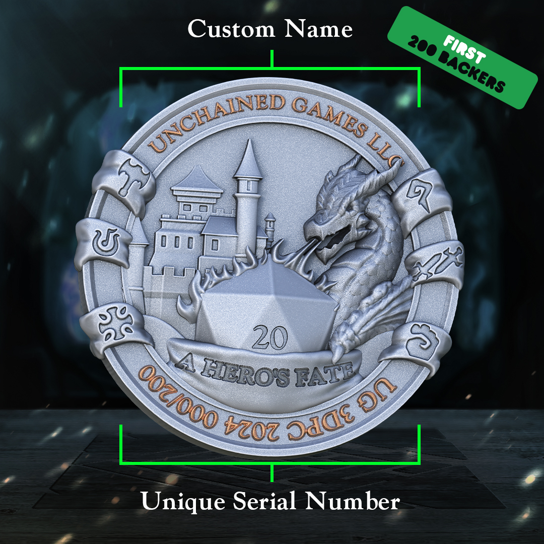 Get notified when we launch and be one of the first 200 backers to receive a custom collectible coin! Choose any text up to 20 characters long to put on top of your unique coin STL!