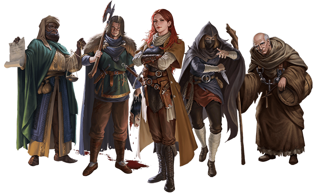 The Alchemist – brew potions, bombs, and concoctions of strange power. The Druid – wield nature’s fury in a land where the old ways survive. The Hexslinger – fire thunderous “hex guns” gifted by Merlin himself. The Mendicant – a wandering priest blessed with miracles. The Scop – poet, trickster, and voice of the people. The Skulk – outlaw and scout who slips unseen into danger. The Wanderer – hardened survivor with tales and skills from distant lands. The Warrior – sword, shield, and raw skill against the darkness. …and more. Heroes born of fear, faith, and fury, ready to battle horrors from beyond time.