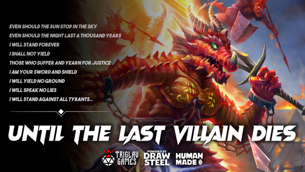 Castle Omund has fallen — and you were there. Years after the betrayal of the Dragon Phalanx, it's time for payback...with a vengeance! Until the Last Villain Dies is a modular 2nd-echelon adventure for Draw Steel: aided by your dragon knight informant, Cyrri, avenge Omund by hunting down the draconians who betrayed the Good King and protect Vasloria from another of Ajax's villainous schemes. Before there can be peace, there must be justice!