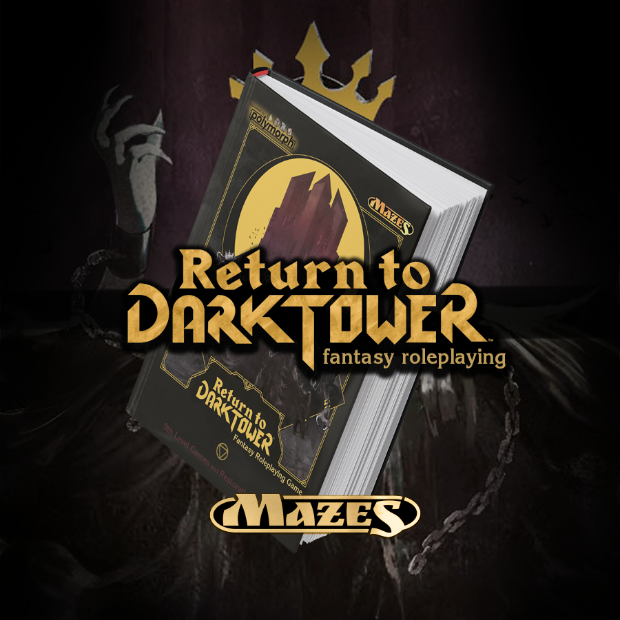 Return to Dark Tower Fantasy Roleplaying is a complete fantasy RPG based on the hit board game RETURN TO DARK TOWER by Restoration Games, and inspired by the original Dark Tower board game from the 1980s. Powered by polymorph and compatible with 9th Level Games’ award-winning MAZES Fantasy Roleplaying, the Return to Dark Tower RPG brings dark, pulp-inspired storytelling and fast action to the table with modern roleplaying rules built on very deep roots.