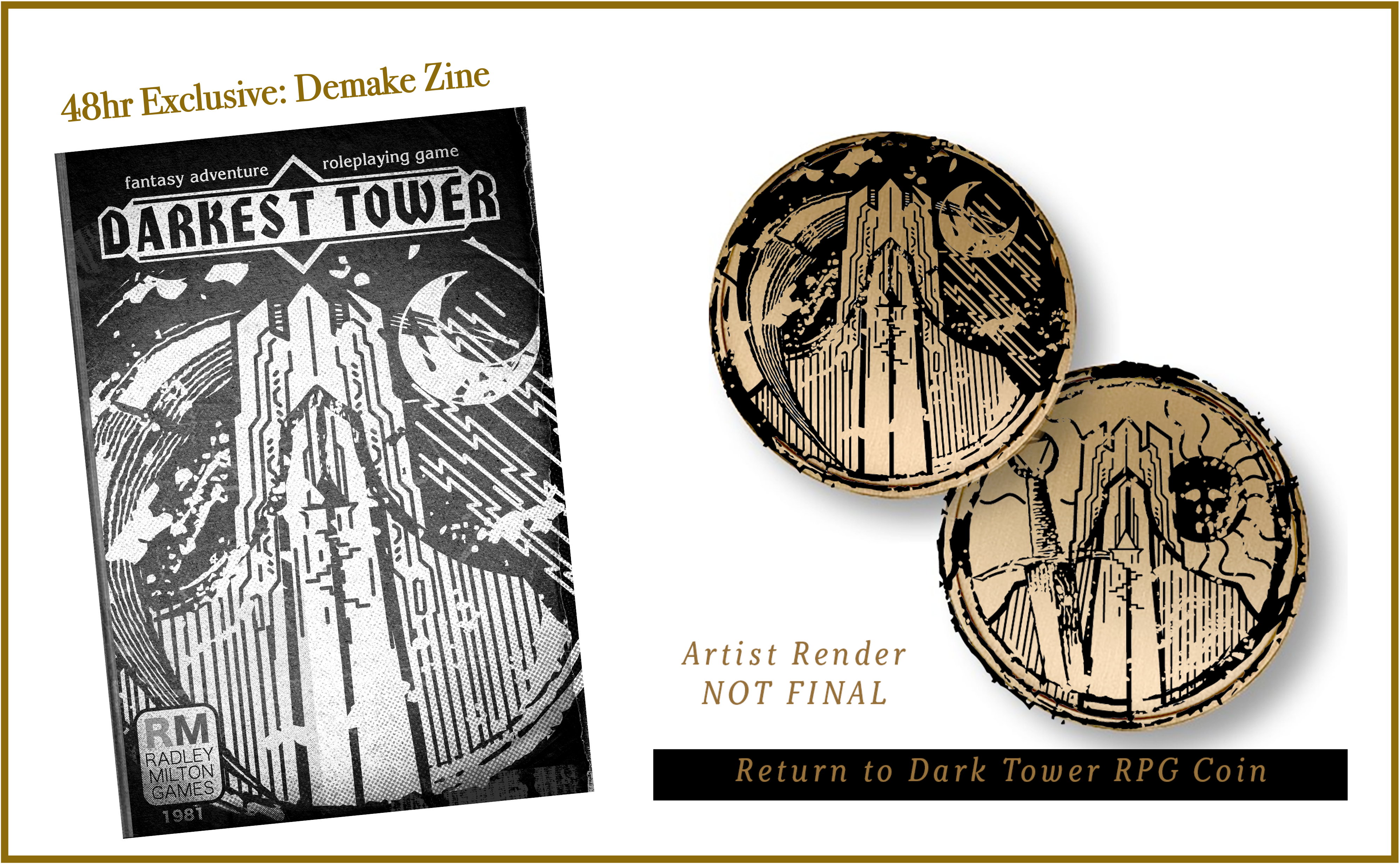 All backers* in the first 48 HOURS receive an exclusive Return to Dark Tower RPG demake zine! This is a reimagination of the roleplaying game as though it was released back in 1981.