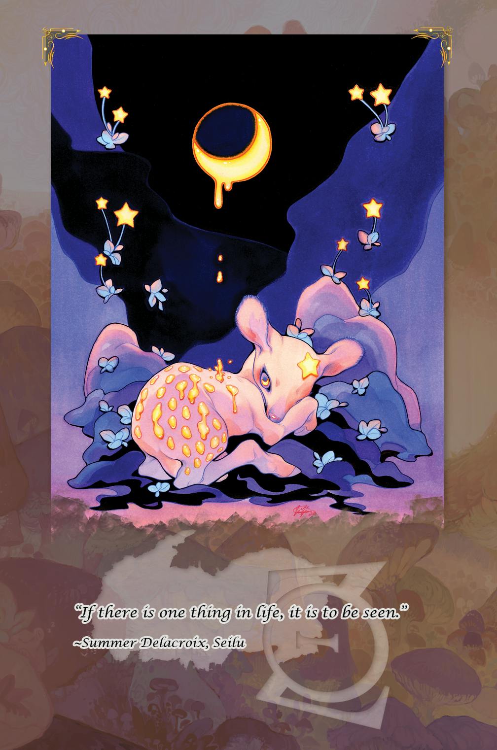 Manifesations in Gallerie speak to seeing and engaging with our world in ways neurotypicality doesn't reward. Medium, the core magic of Gallerie, embodies expression and authenticity and is viewed as everything from beautiful to threatening to horrifying depending on where you are, or what company you seek. Recreating ones body because your flesh doesn't match who you are, or having the power to defend that flesh from those who insist it cannot be who you are, is a theme that permeates these pages. The hope here is to create an environment that normalizes discomfort and lets those who have lived in it demonstrate how navigating it feels, rather than normalizing comfort and forcing those who are not comfortable to insist on discomfort’s inclusion.