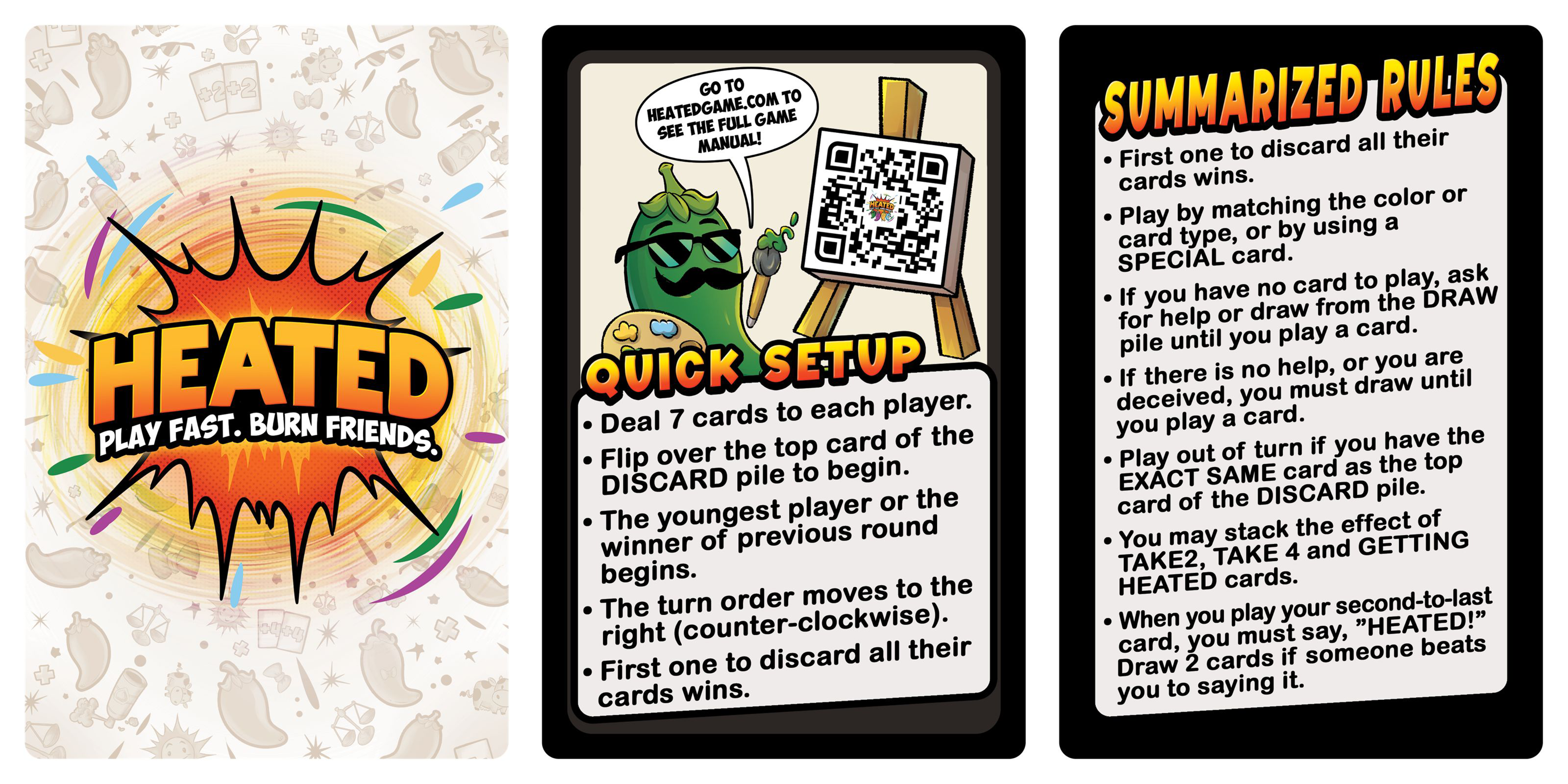 Get Ready for HEATED - Play fast. Burn Friends. The family-friendly, colorblind accessible, card-shedding game