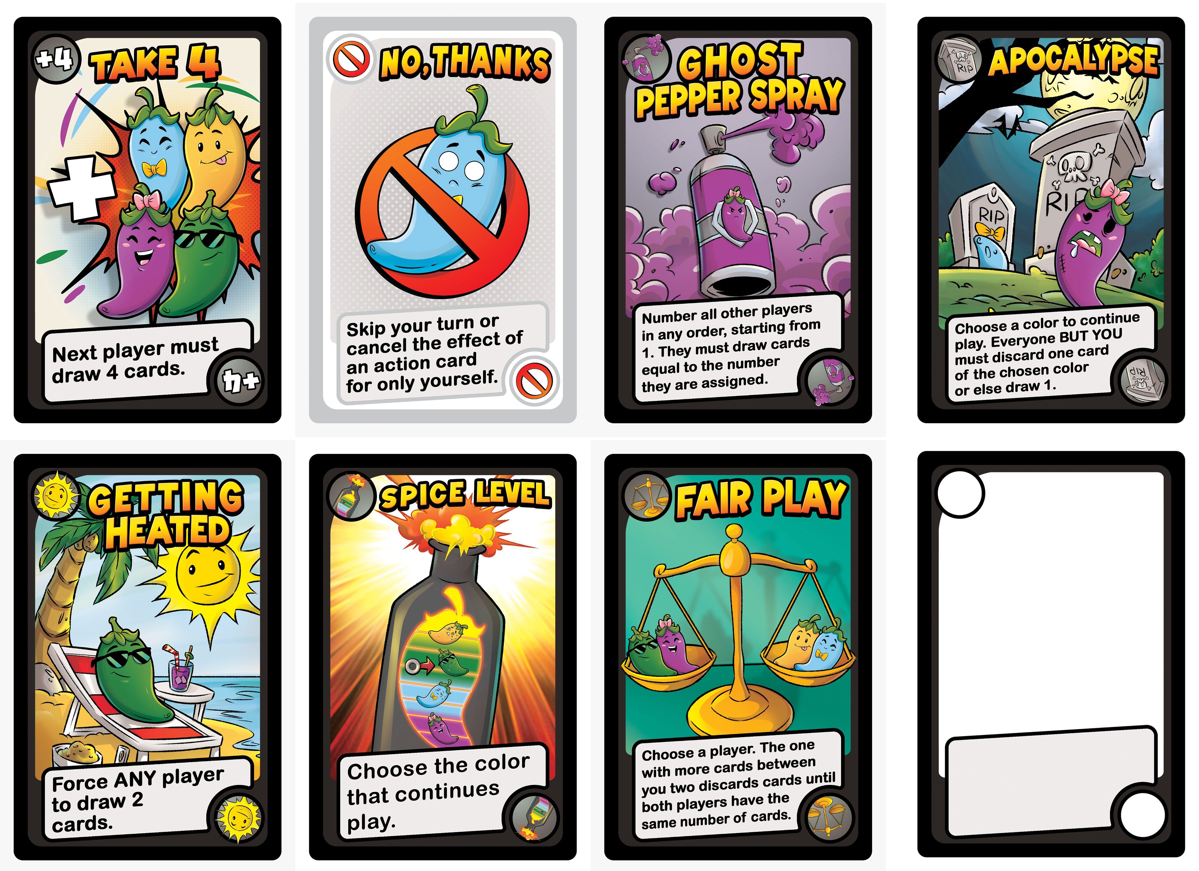 Lots of Special Action Cards to keep the game unpredictable! And a Blank card to make your own!