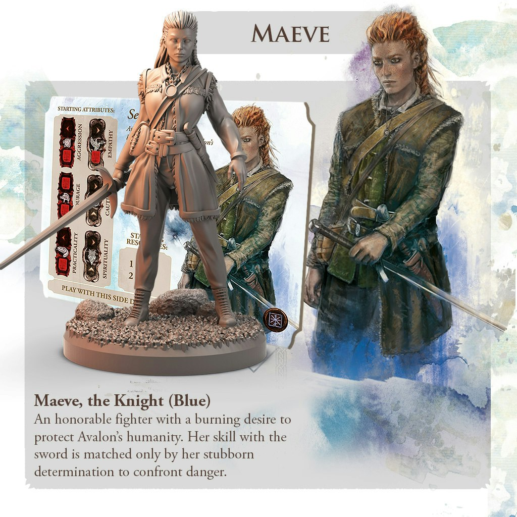 Avalon Journey will include 5 pre-made characters, taken directly from the role-playing game core book. These are also the characters featured in the Heroes of Avalon: Box of Minis.