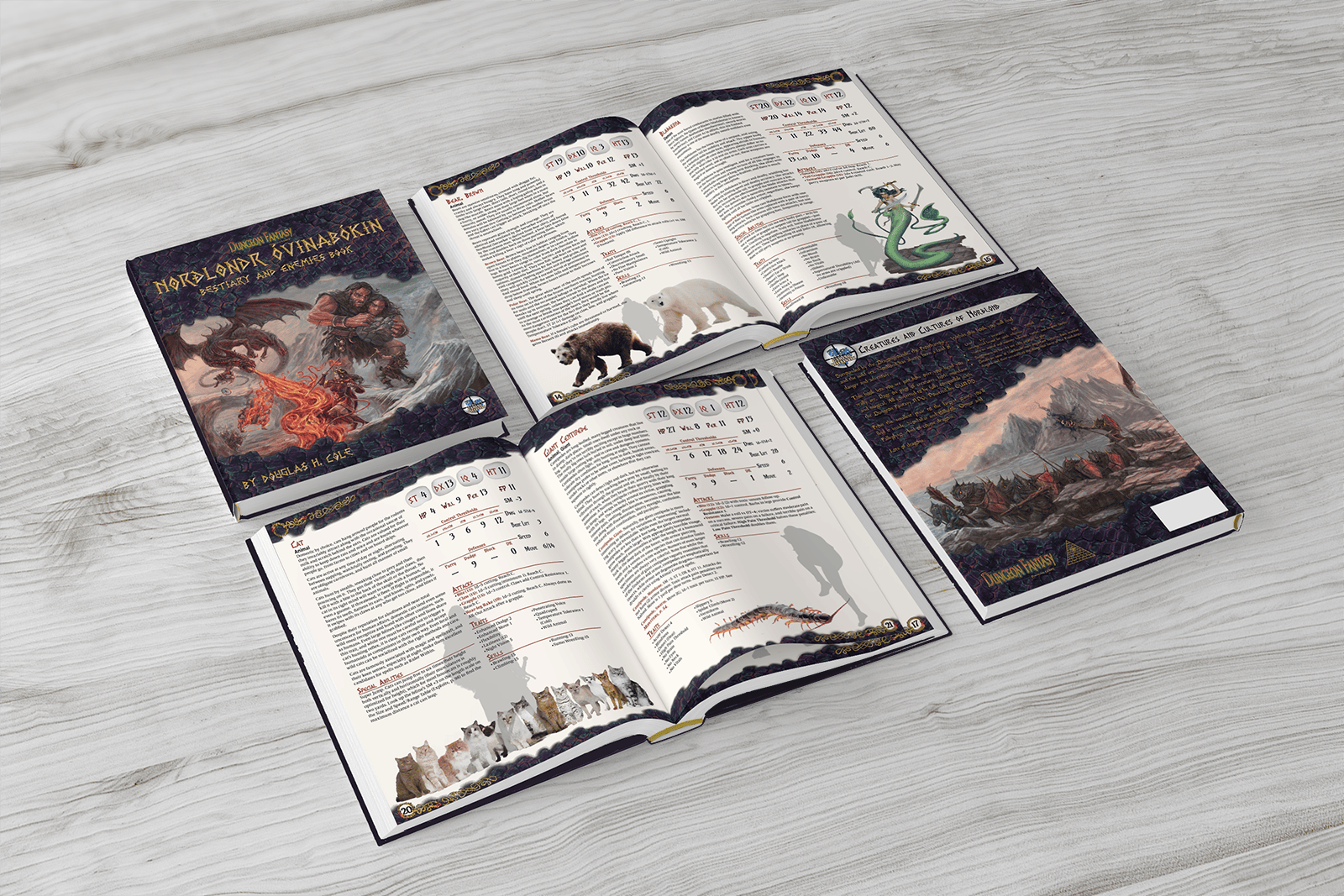 The Norðlondr Óvinabókin - the Nordlond Bestiary and Enemies book - delivered nearly 200 creatures, ready to play. The three new products support this book, though they are usable without it!