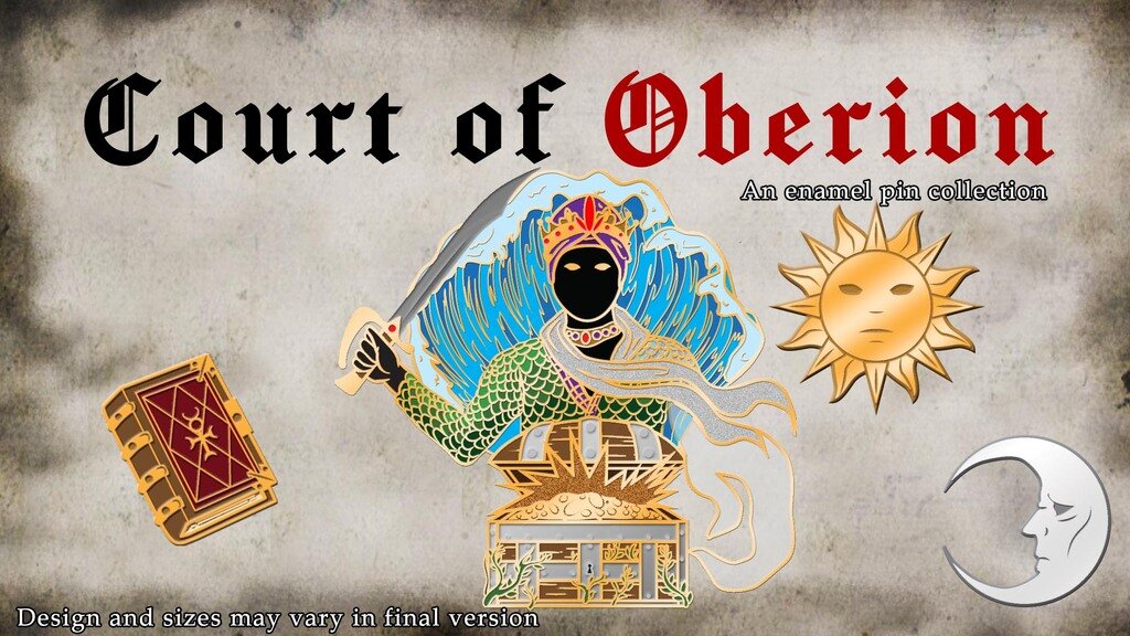 A collection of enamel pins based on the faeries in the grimoire, Book of Oberon, that have inspired some of the characters in the works of Shakespeare.