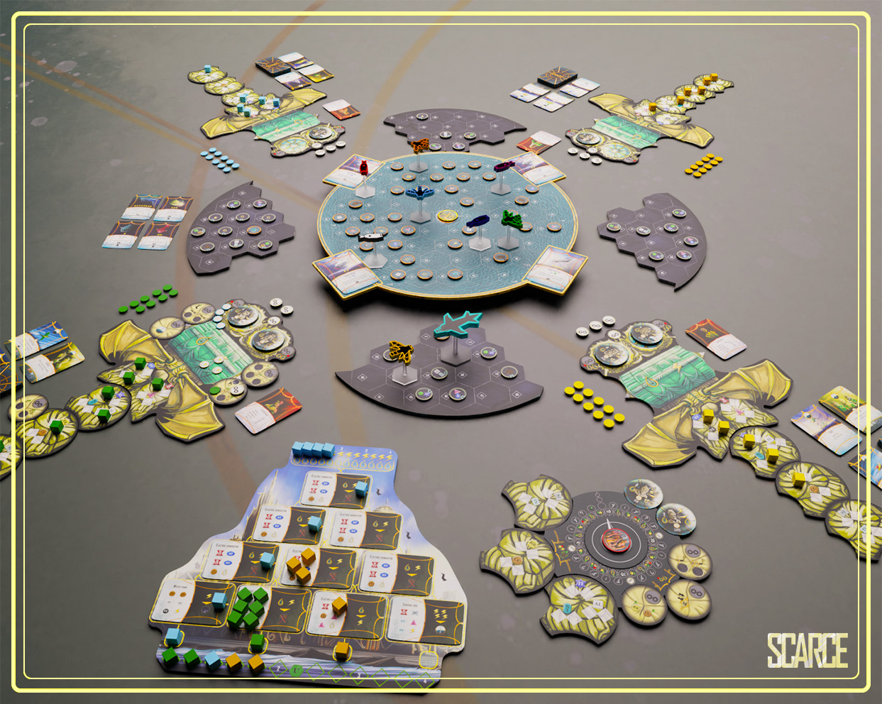 Scarce is a fully cooperative or competitive experience where players need to finish the construction of the enormous nuclear plant that powers their floating city. Each player controls a dragonfly ship, a vehicle that can travel in the air, on the ocean surface, and in the deep ocean.