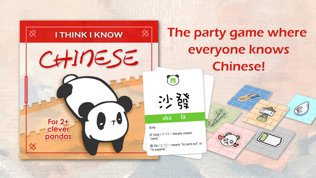 I Think I Know Chinese is a light, cooperative party game for two or more players where everyone works together to decode Chinese words using intuition, imagination, and a set of delightfully strange Element Tiles.