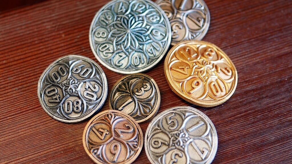 Flip a coin, roll a die, build your hoard! I designed this full set of tabletop dice to function as normal polyhedral dice do, but with the form factor of coins. The set includes a d4, d6, d8, d10, d00 (decader), d12, and d20. Each coin has all even numbers on the "heads" side and all odd numbers on the "tails" side, allowing any of them to work as a d2 as well.