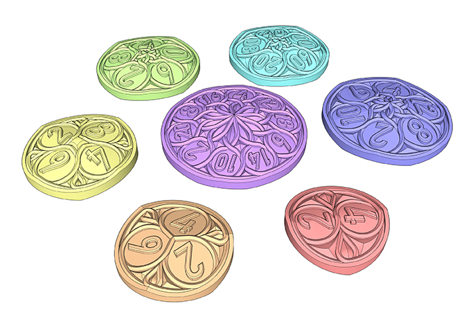 Do you have a 3D printer and the desire to print your own coin dice? The $10 pledge level will net you the 3D printing .STL files of the Forest Kingdom Coin dice set and the files for the Mountain and/or Ocean Kingdom Coin dice if those stretch goals are unlocked. The .STL package is also available as a $6 add-on if you have already pledged for physical dice.