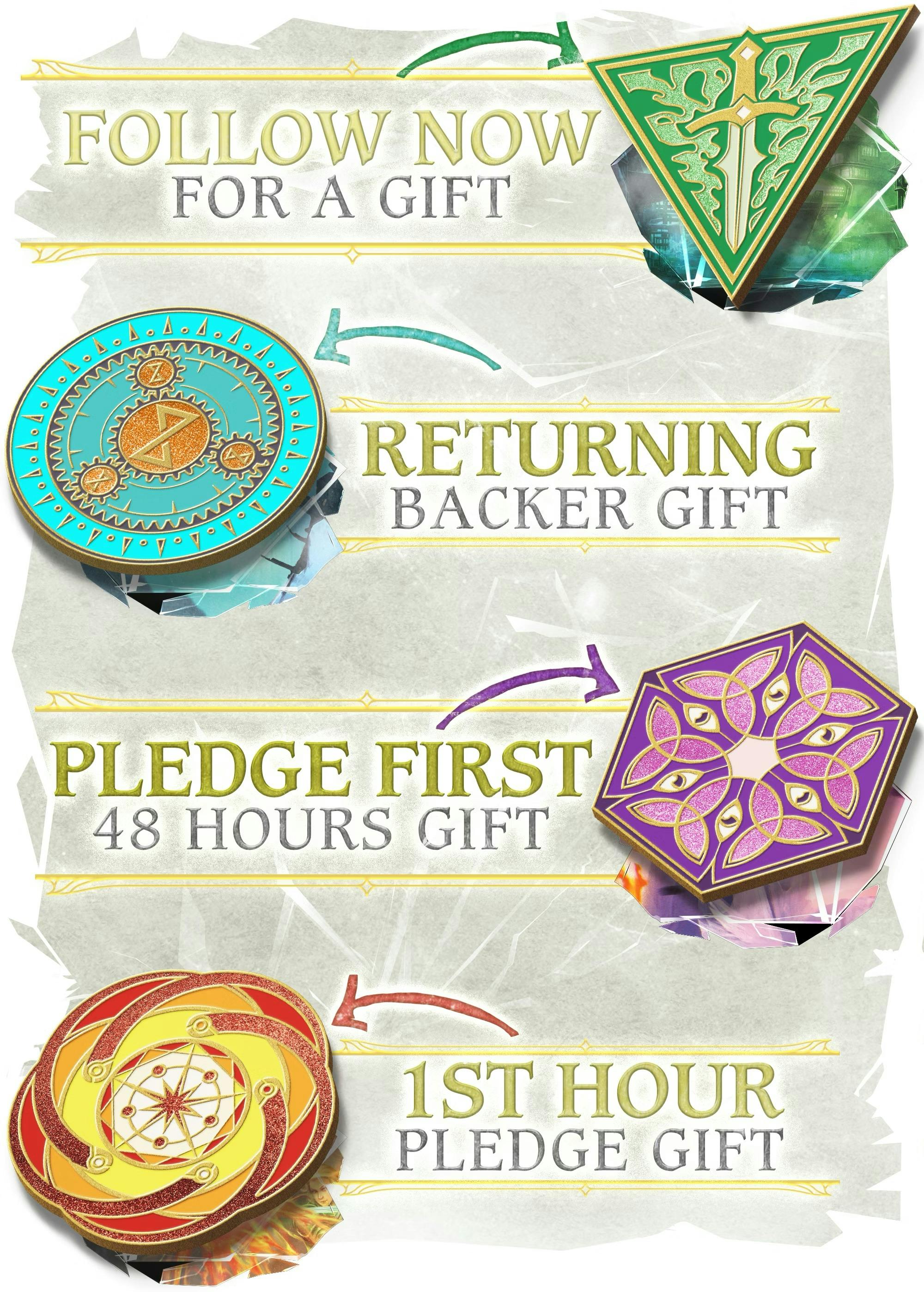 Follow now and pledge a physical tier to receive the Pillars of Power pins!