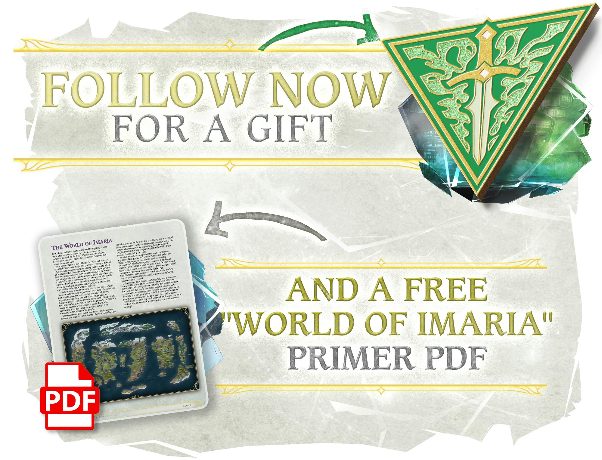 Followers will receive the Antimagic Pin and The World of Imaria Primer PDF (instant download)