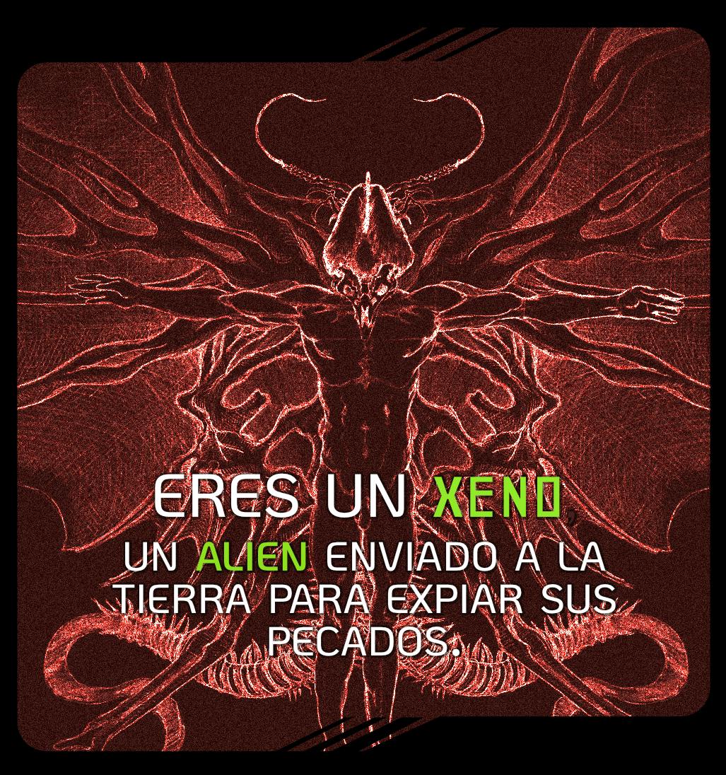 Juega como un XENO, una forma de vida alienígena que ha llegado a la Tierra para expiar sus PECADOS. Puedes mutar, infiltrarte o simplemente abrirte paso a la fuerza entre los humanos, pero debes ser inteligente. Eres poderoso, pero los humanos son numerosos y algunos de ellos tienen acceso a tecnología que está por encima de su nivel tecnológico.