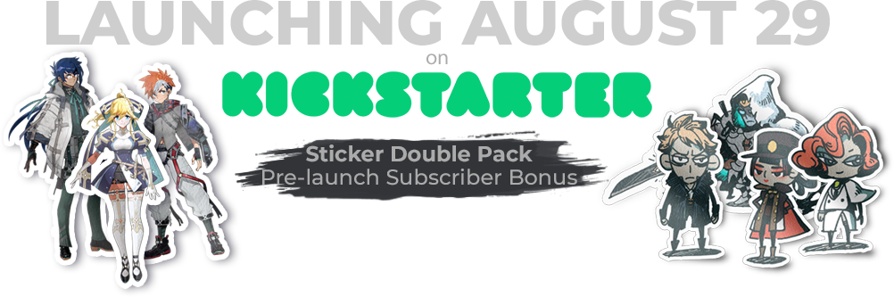 All pre-launch subscribers who back a physical tier on the Kickstarter campaign will also receive a Sticker Double Pack with 15+ stickers featuring characters from both titles! * The Sticker Double Pack will be a Kickstarter early bird bonus for anyone who backs within the first 48 hours, however this offer is extended through the entire campaign for pre-launch subscribers. Simply submit the same email address you use to pledge on Kickstarter to secure this offer.