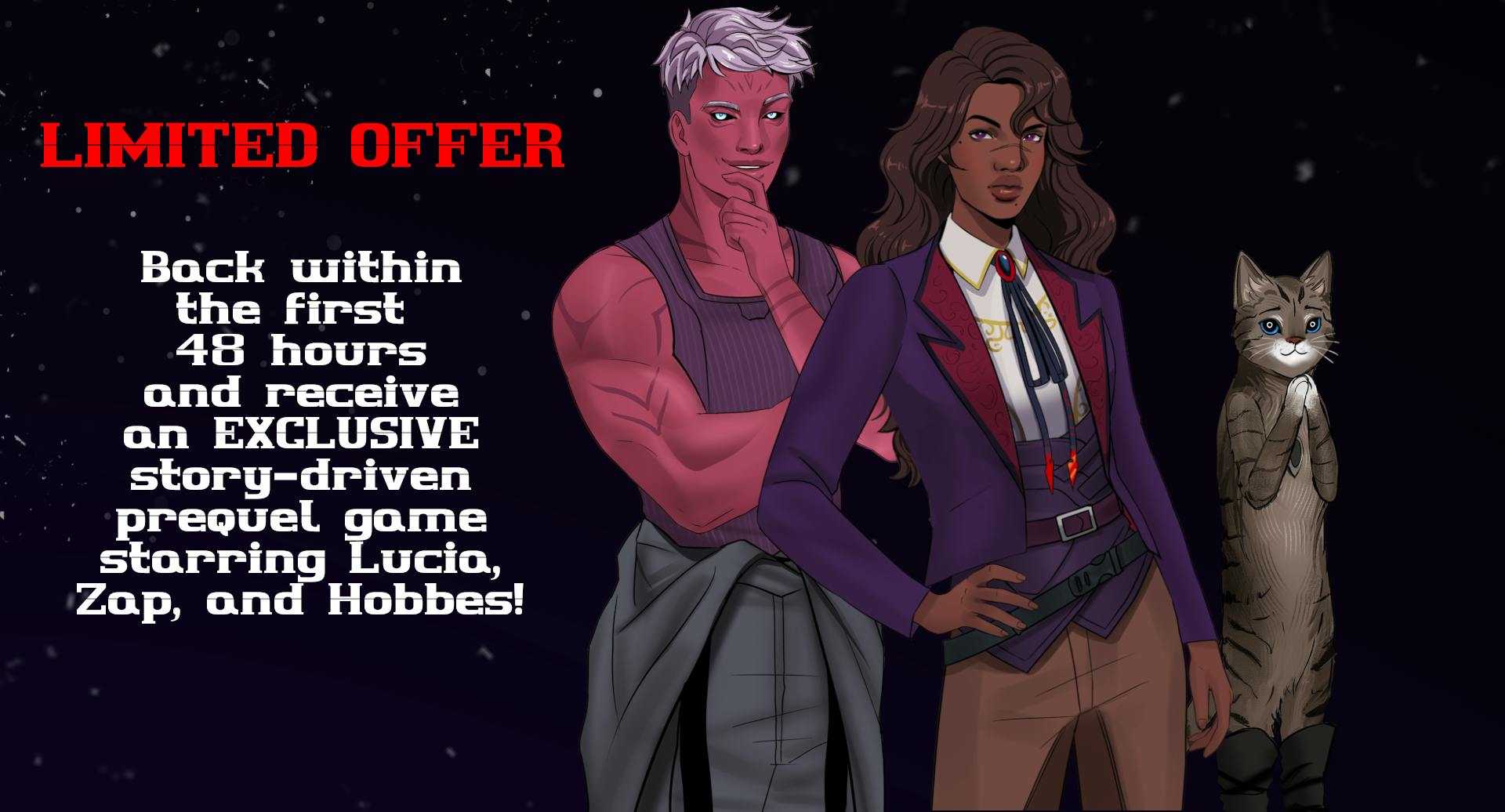 Signing up for our mailing list gets you access to our exclusive PC demo before the campaign launch and if you back our Kickstarter, you get exclusive rewards including beta access to Bitter Silver and a Kickstarter backer-only prequel game if you sign up within 48 hours of launch that expands on the lives of Lucia, Zap, and Hobbes as bounty hunters.