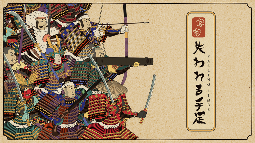 Fight with a range of weapons from the age of the samurai and of the legends of its heroes. Falling Limbs (失われる手足) has something for every school of training, from katanas, spears and clubs to bows, matchlocks and even a devastating cannon.