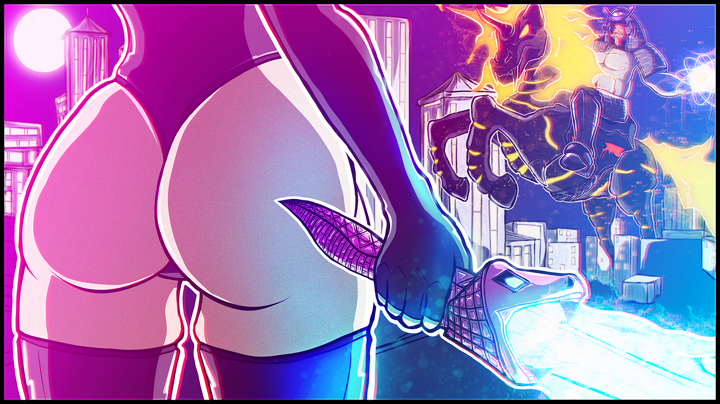Murasaki & the Dragon Kiss is an over-the-top, high octane adult comic series that follows the triple-exploits of a young woman named Alex as she defends Tokyo 2069 from a never-ending onslaught of kaiju-sized demons. Issue #1 is 28 pages, total.