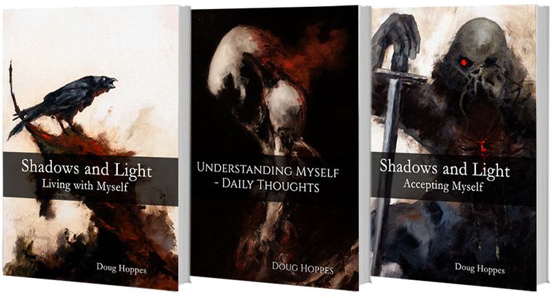 Now, don’t get me wrong.  I love reading books on Zen and self-help, and I still do occasionally.  However, I wanted something to address the not-so-nice nature of the world, so I created a set of paintings that now reside in the Gallery of Nightmares. These paintings are part dark and part light, comprising the Shadows and Light series. They represent the issues in life, but also the hope that comes with being able to deal with the problems.
