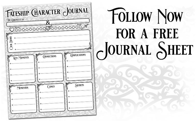 If you sign up to follow this campaign you will receive a free PDF character sheet Journal expansion page to track and develop your character's relationships.