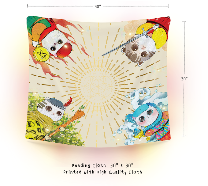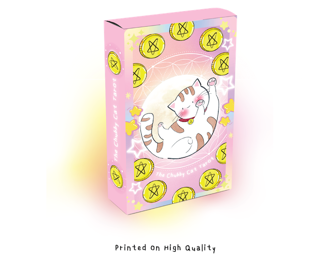 Introducing the Extra Special Touch to Our Tarot Deck! ๐โจ Each tarot card is a standard 2.75โ x 4.75โ size, boasting a sturdy 350 gsm. But what makes this deck truly enchanting is the unique back card. Picture this: two adorable cats in a sweet pose, encircling the moon with an irresistibly cute and sweet vibe. ๐พ๐ It's the kind of special that'll make you fall head over heels! Dive into the magicโget ready to be enchanted ๐ Unveiling the Exclusive SWANKY AND CUTIE CHUBBY READING CLOTH! ๐โจ Crafted with an abundance of love and a touch of obsession, this reading cloth is a bespoke masterpiece tailored just for our special project. The symbols of the minor cards gracefully adorn the cloth, blending their powerful energies seamlessly with the adorable Chubby Cat symbol. The center radiates a perfect energy for your readings. Elevate your tarot experience with this one-of-a-kind creation! ๐๐ซ #ChubbyCatMagic #TarotElegance ๐๐ The creator poured heart and soul into crafting this special box for our tarot project. Featuring the sweet and charming Chubby Cat, it's designed to make you fall head over heels and feel fresh vibes every time you lay eyes on it. Dive into the magicโback us on BackerKit and secure your very own Chubby Cat Tarot Box! The enchanting Tarot cards of "CHUBBY CAT" draw their inspiration from the delightful world of the "CHUBBY CAT" character. Rooted in the Rider-Waite Tarot, a renowned and beloved Tarot deck, this collection seamlessly weaves the chubby feline into the existing intricate tapestry of symbolism.