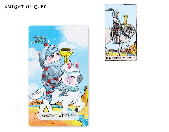 The Card: The Knight of Cups is typically depicted as a knight riding a white horse and holding a golden cup in the Tarot imagery. In this portrayal, the chubby cat knight's cheeks appear with a subtle blush, symbolizing the card's connection to romance and emotional matters. The Knight of Cups is typically depicted as a knight riding a white horse and holding a golden cup in the Tarot imagery. In this portrayal, the chubby cat knight's cheeks appear with a subtle blush, symbolizing the card's connection to romance and emotional matters. The Knight of Cups is typically depicted as a knight riding a white horse and holding a golden cup in the Tarot imagery. In this portrayal, the chubby cat knight's cheeks appear with a subtle blush, symbolizing the card's connection to romance and emotional matters. The Knight of Cups is typically depicted as a knight riding a white horse and holding a golden cup in the Tarot imagery. In this portrayal, the chubby cat knight's cheeks appear with a subtle blush, symbolizing the card's connection to romance and emotional matters.