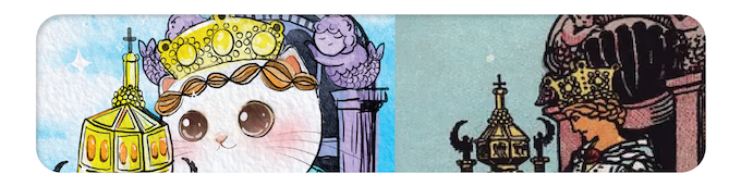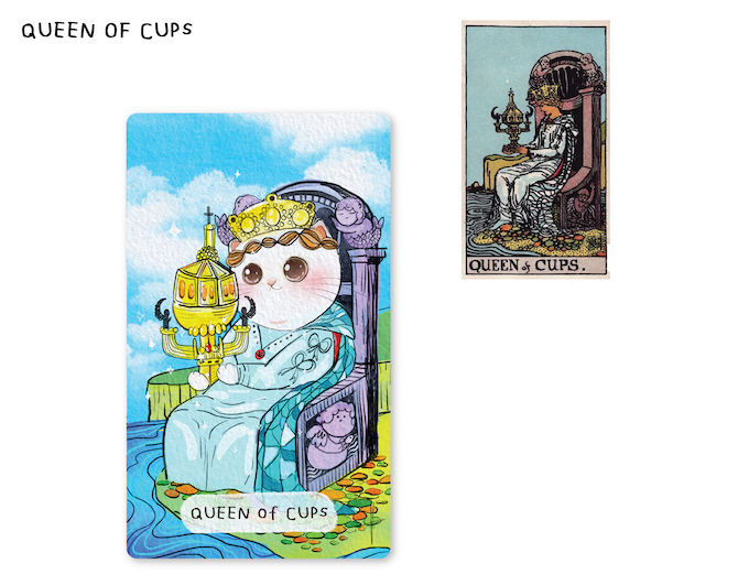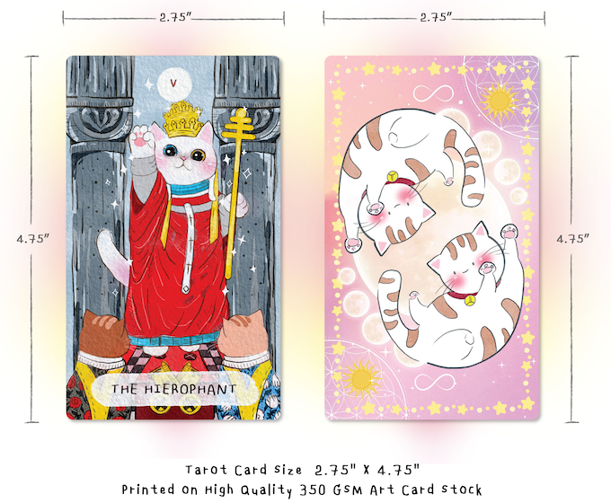 While the main character takes on the endearing form of the "CHUBBY CAT," every detail within each card remains faithful to the essence of the Rider-Waite Tarot. The artist has dedicated herself to thorough research of the Rider-Waite Tarot, ensuring that each card retains its original depth and meaning while infusing it with her unique style and signature touch.
