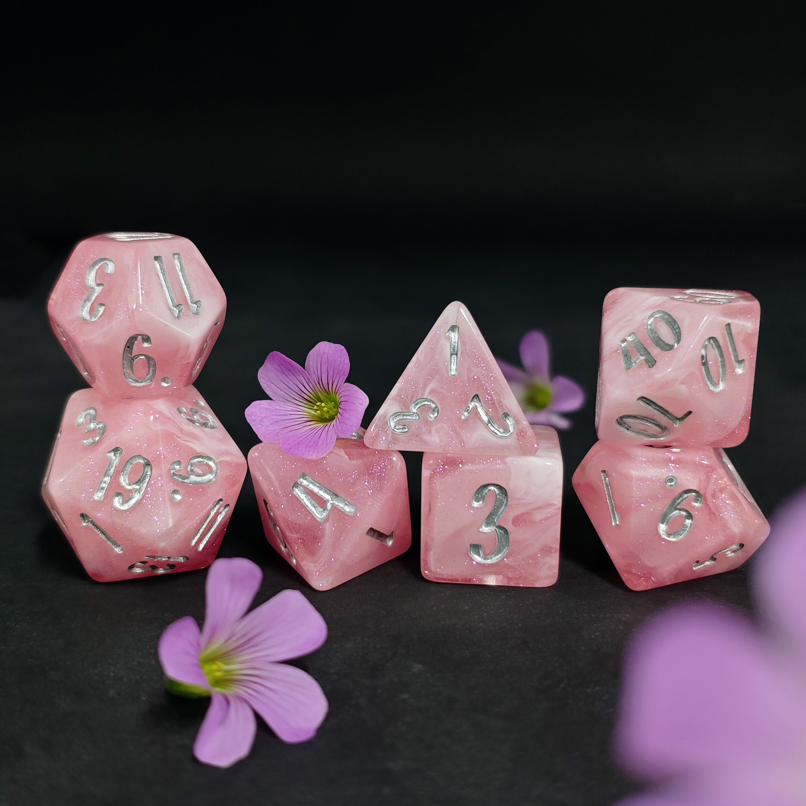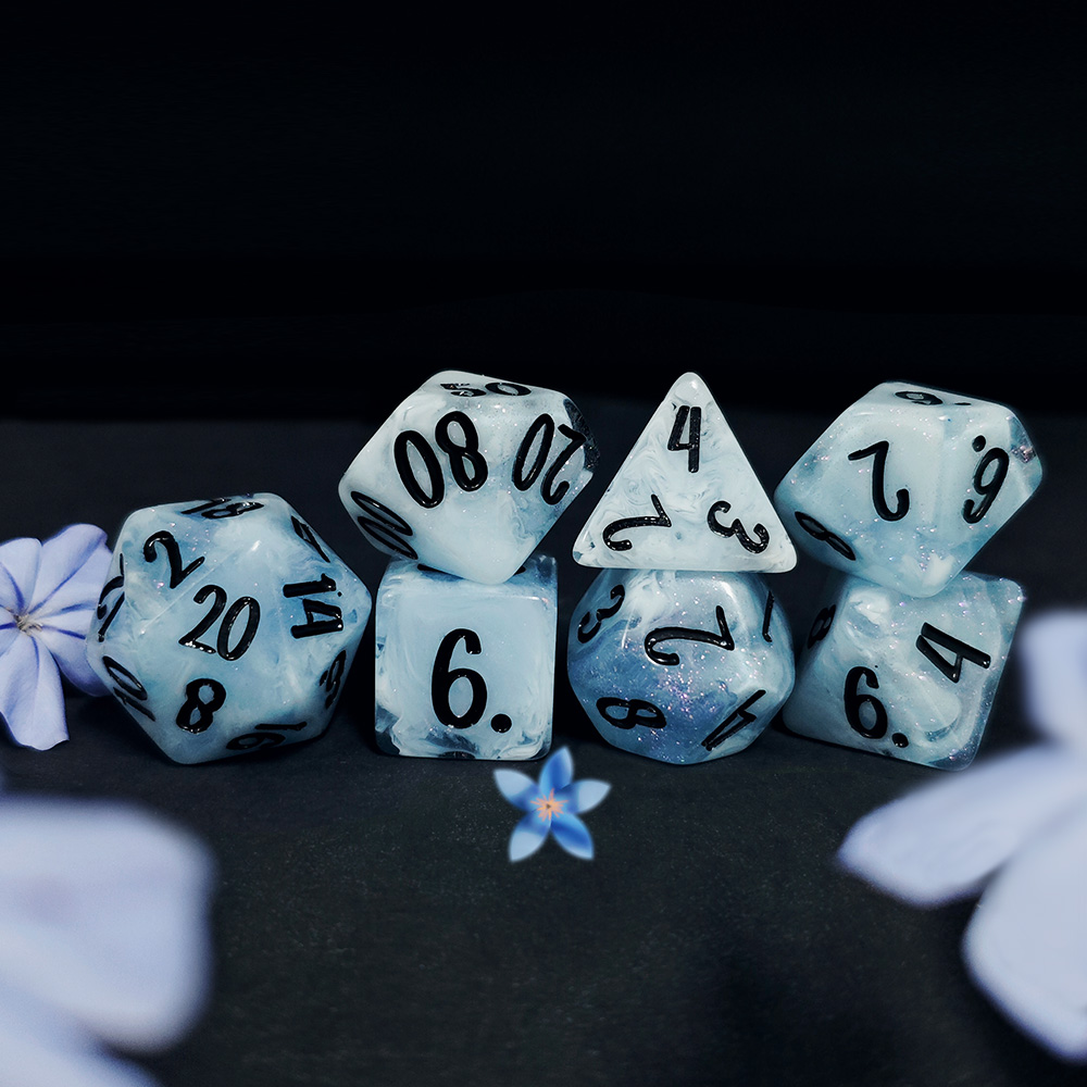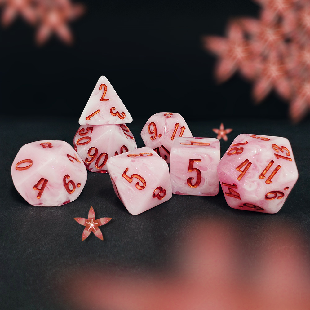 Step into the druid’s grove — Blossom & Bloom: 10 botanical 7-piece resin dice sets plus a 25mm floral D20. Bright, affordable, and crafted to bring springtime color to every roll.