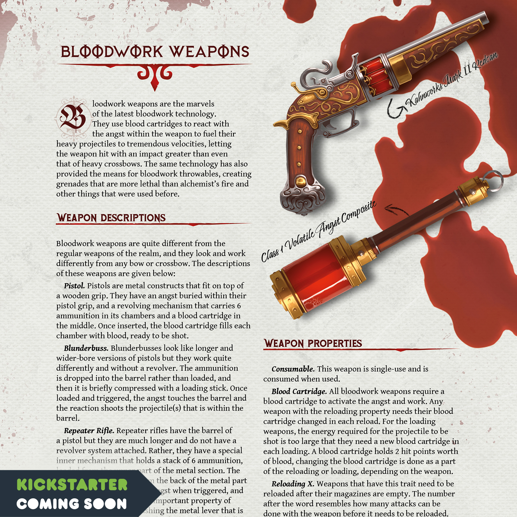 Societies in their current forms became ineffective over time and people developed blood-powered technology with a semi-magical crystal, angst. Blood engines started to be used in trains, zeppelins, radios, guns, and various other ways. Now people must pay their taxes with their blood.