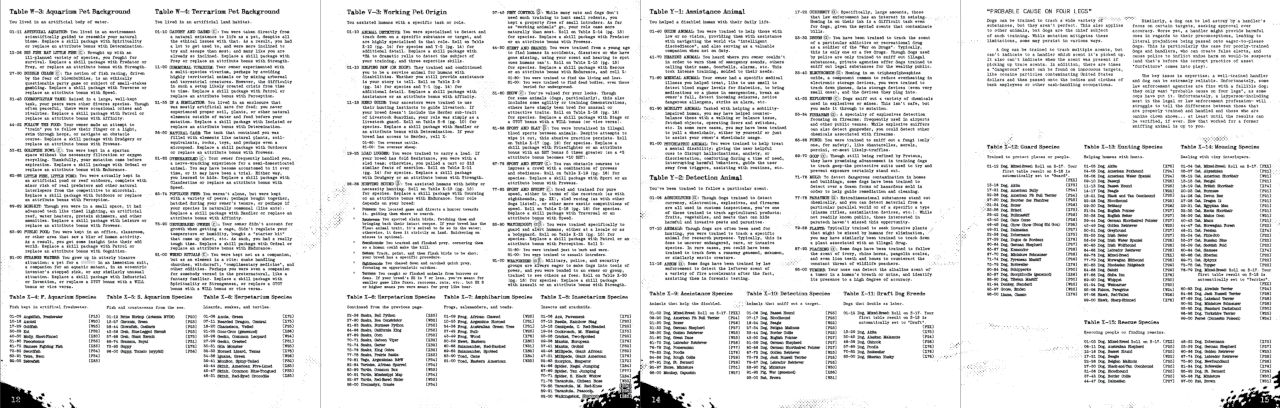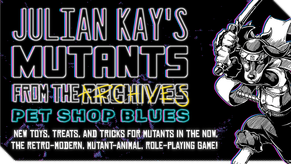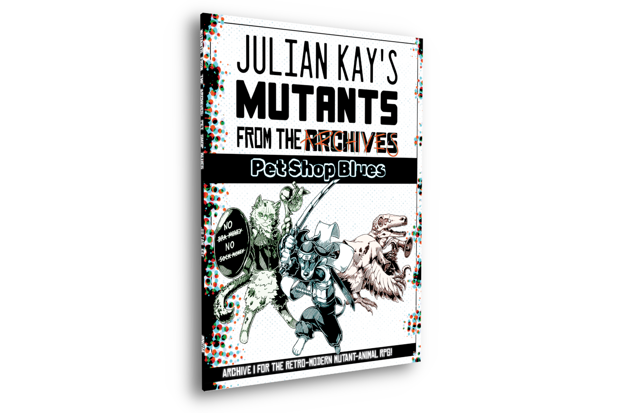 Mutants in the Archives: Pet Shop Blues opens up the cages to release scores of options for pet-themed characters of every stripe, from angelfish to toygers.With over sixty dog breeds and twenty cat breeds, and randomized tables for mixed-breeds, the diverse world of canines and felines is opened up to you. With pocket pets, feathered fancies, radical reptilia, and expanded aquaria, over 140 new species and breeds have been added to the game!
