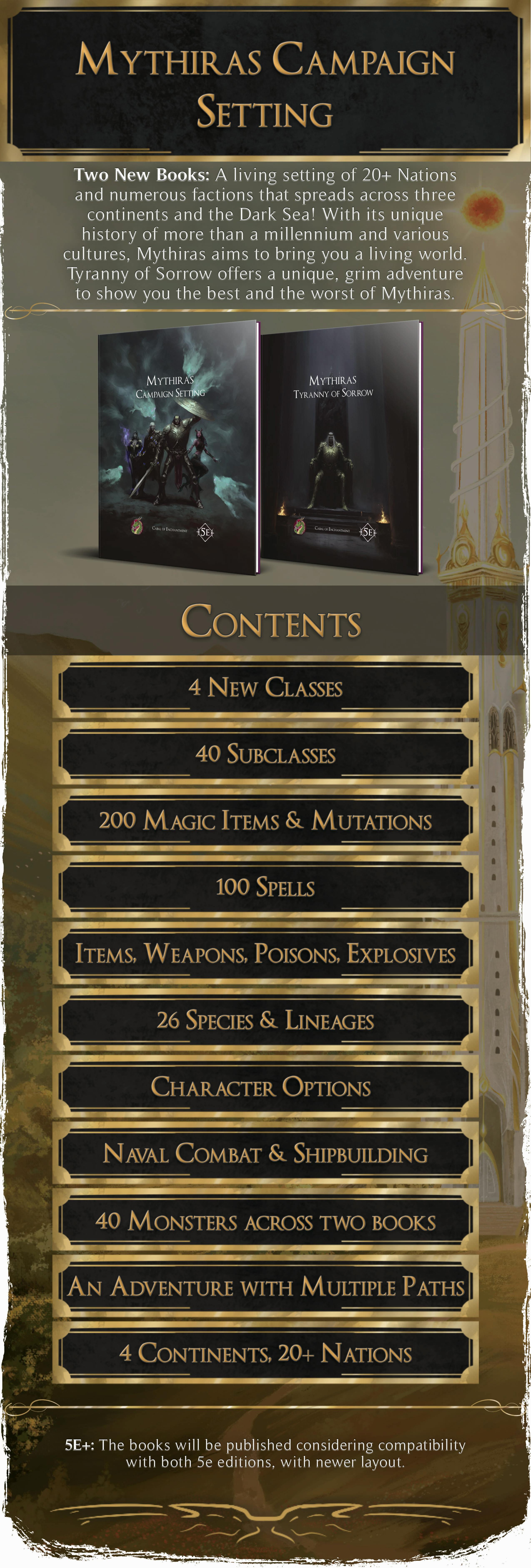 A grimdark fantasy setting for 5e+, a book of ~400 pages where heroes are forged through hardship and every decision carries weight and consequence. This detailed and lore-rich book provides: