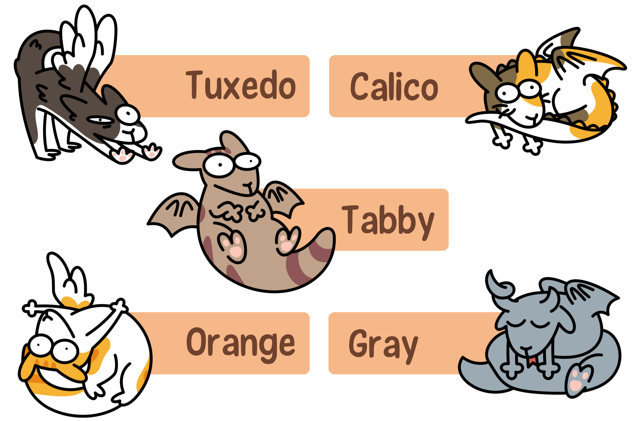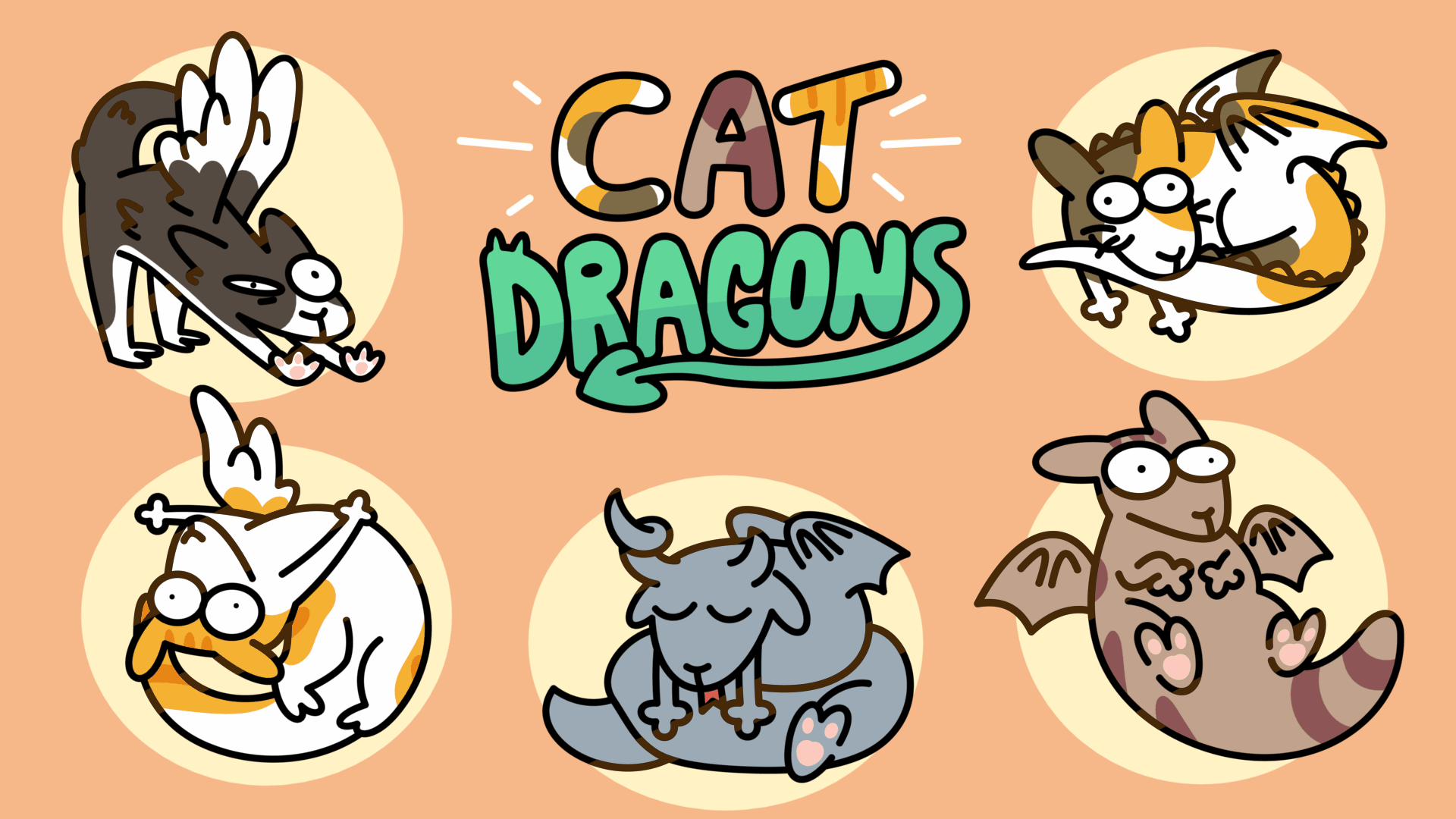 Cute and silly pins of a cross between dragons and cats!