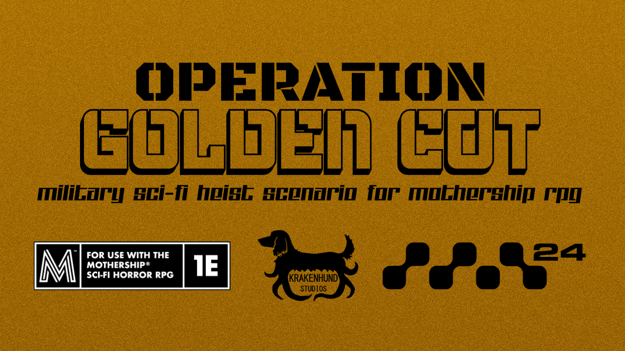 "Operation Golden Cut" is a sci-fi horror adventure for Mothership RPG. Navigate a war-torn mining moon, steal valuable cache of gold amidst brutal corporate conflict, and survive the horrors of human greed and warfare.