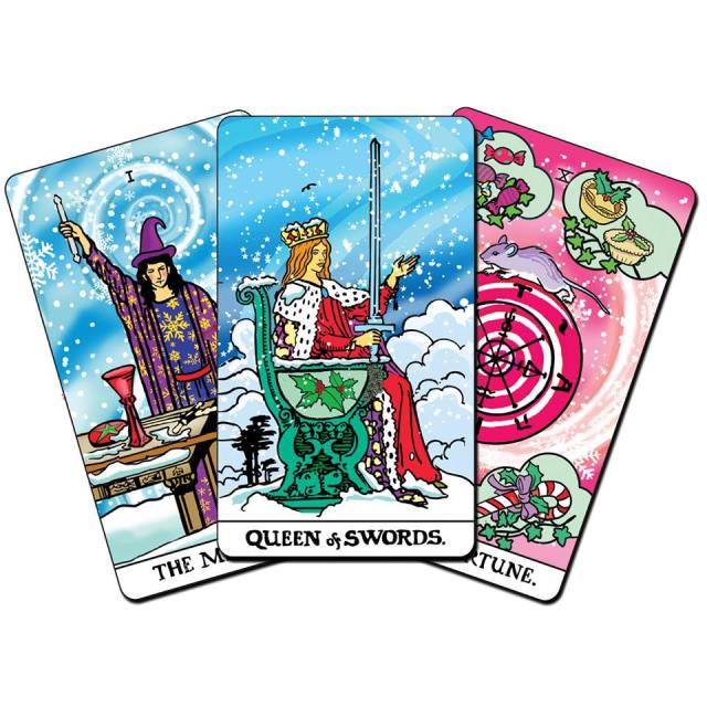A little snow in September. The classic Rider Waite Smith Tarot winterized for the holiday season.